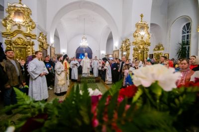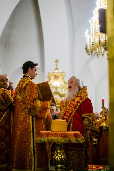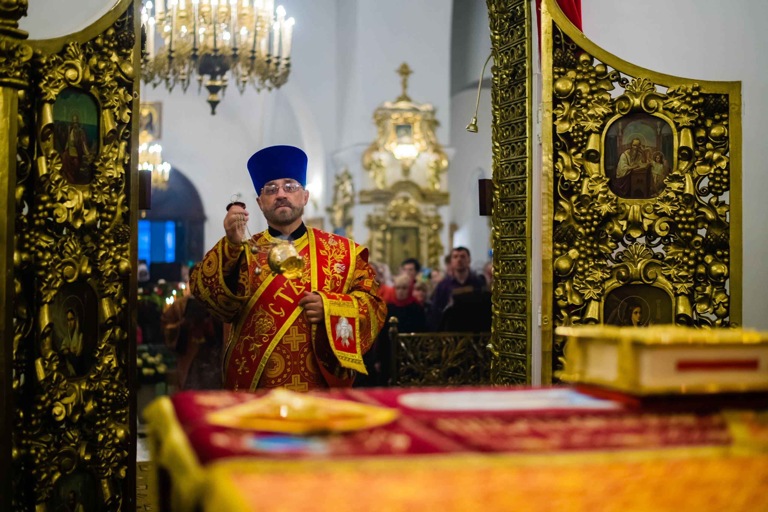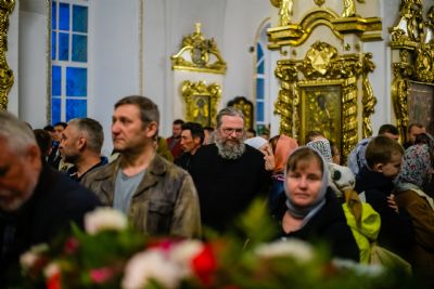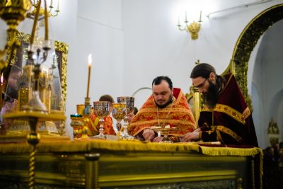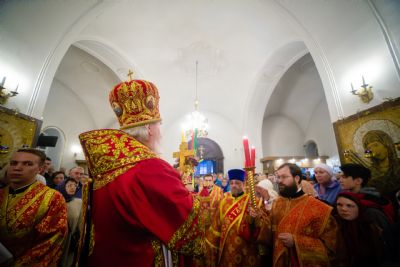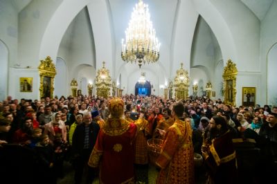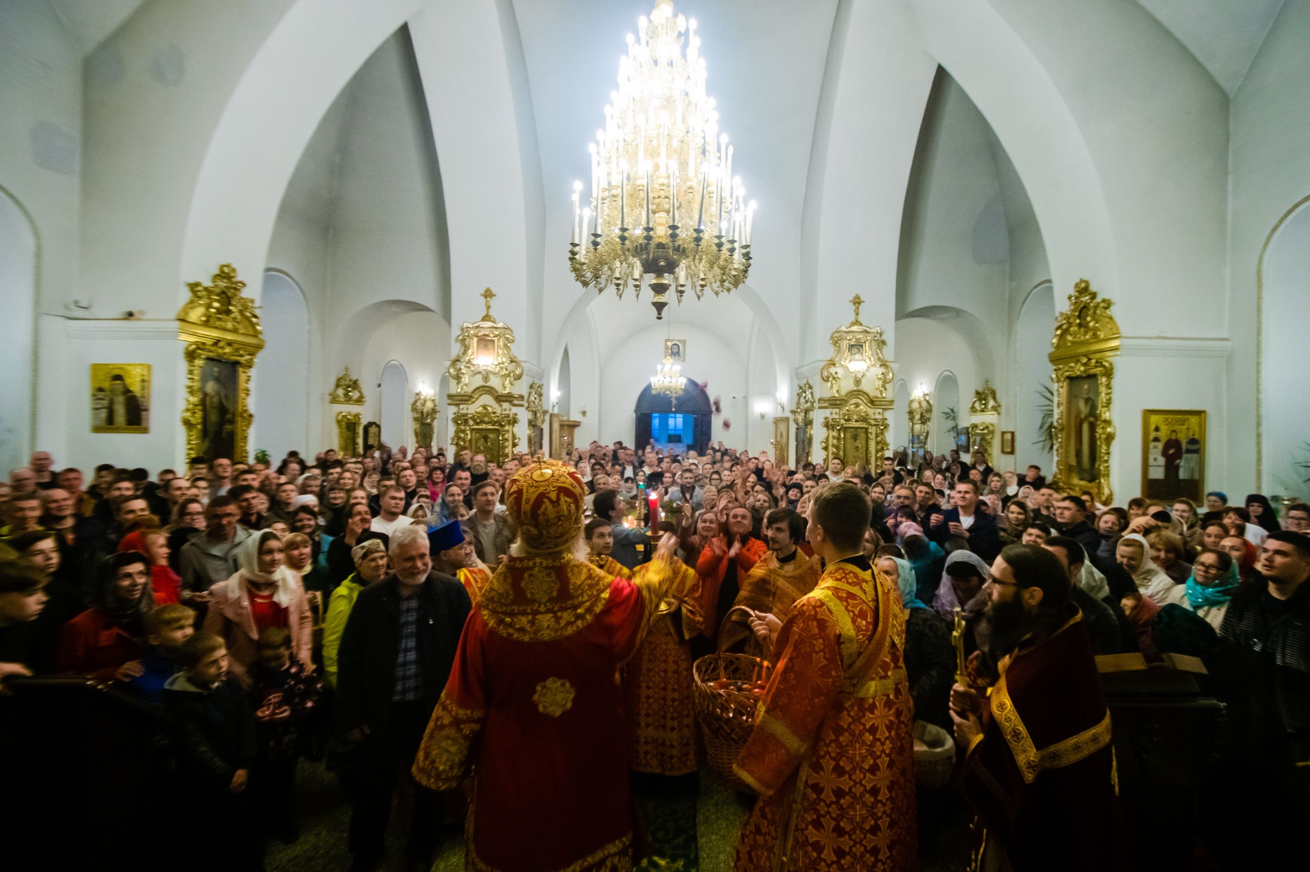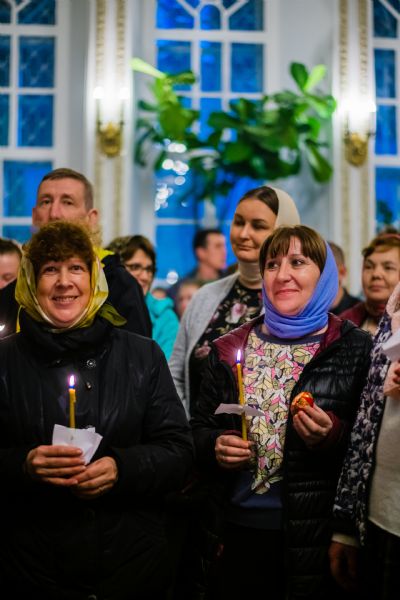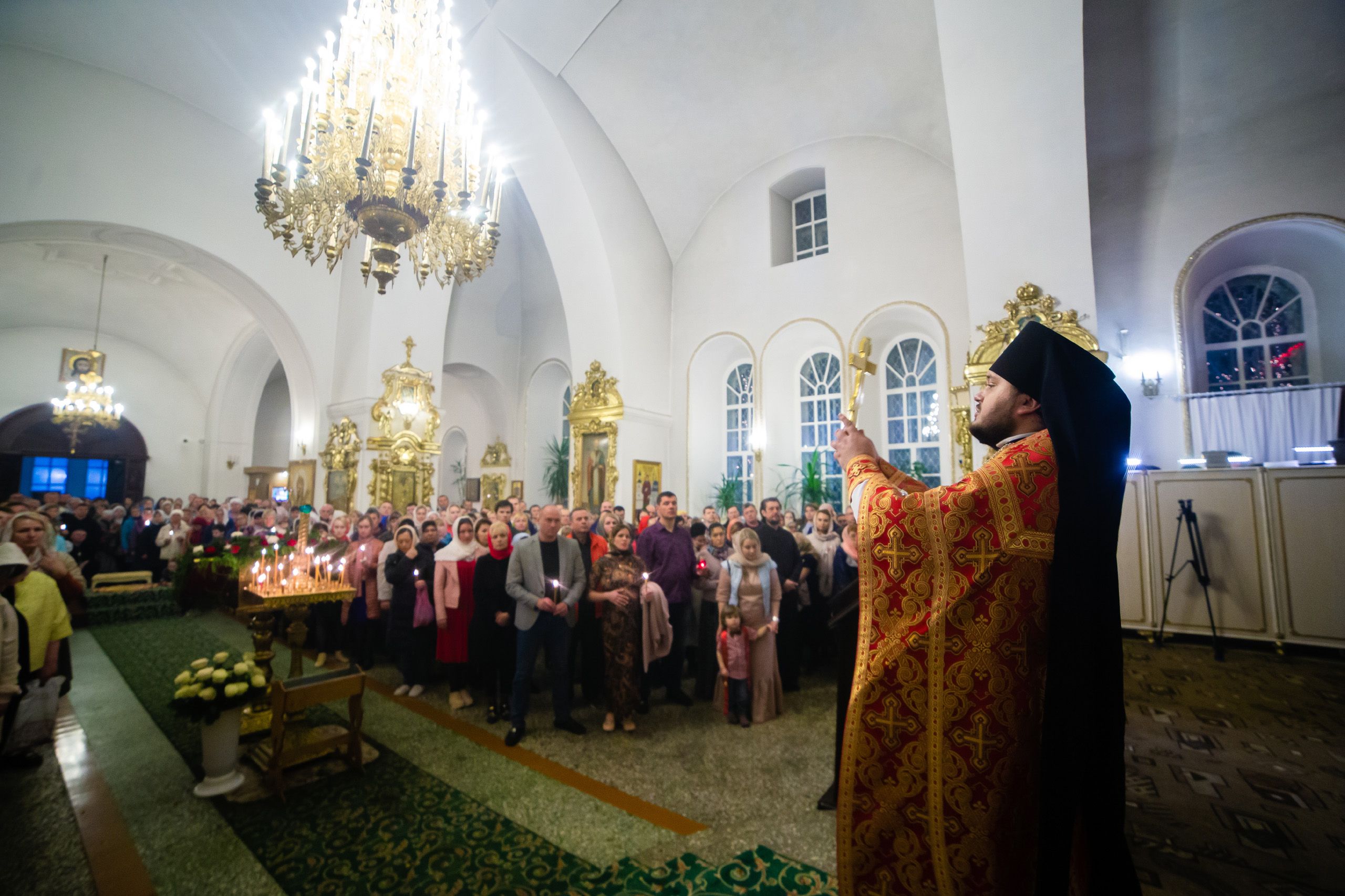 После пения запричастного стиха диакон Олег Кузнецов огласил Пасхальное послание Патриарха Московского и всея Руси Кирилла архипастырям, пастырям, диаконам, монашествующим и всем верным чадам Русской Православной Церкви.