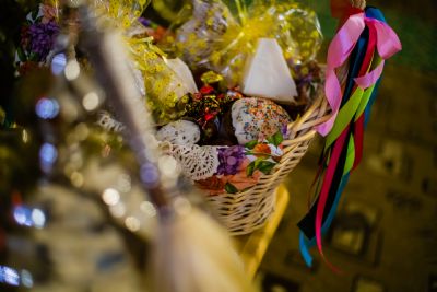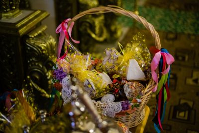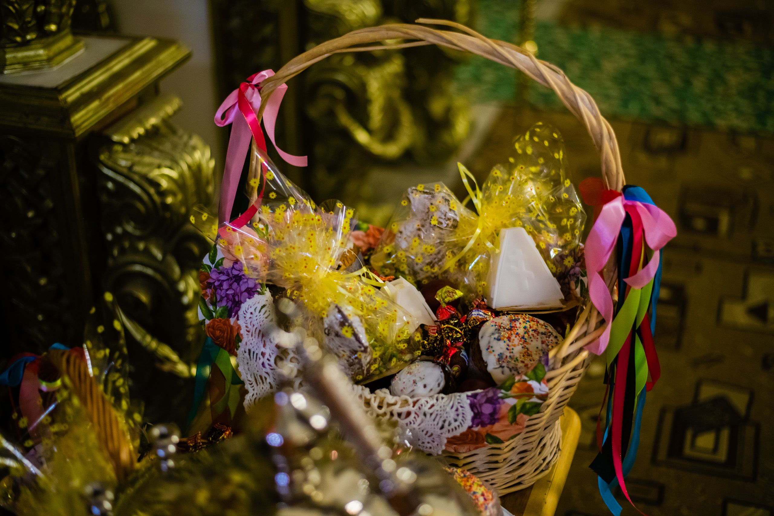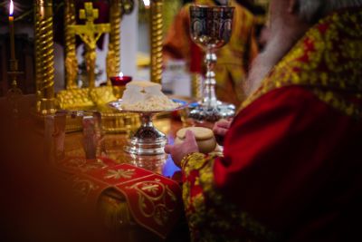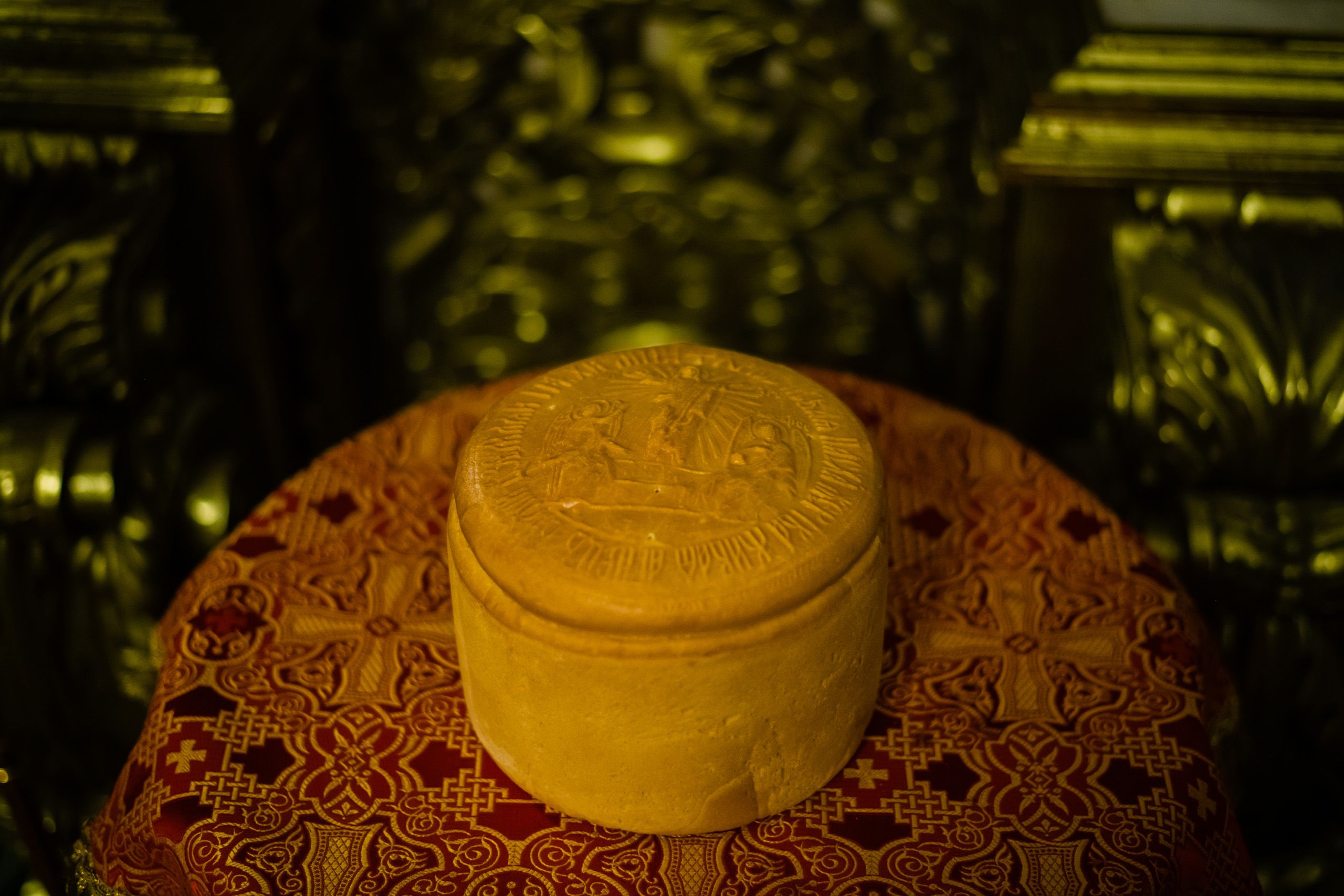 По заамвонной молитве правящий архиерей совершил освящение артоса и пасхальной снеди, принесенной верующими.