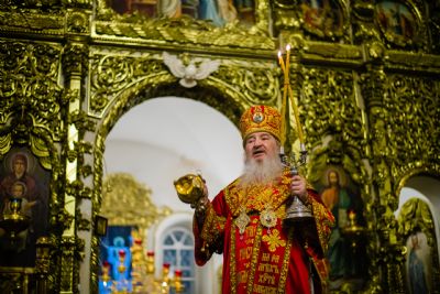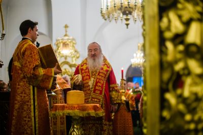 Песнопения исполнялись архиерейским мужским хором Казанской епархии под управлением Дениса Рогова.