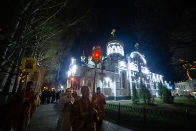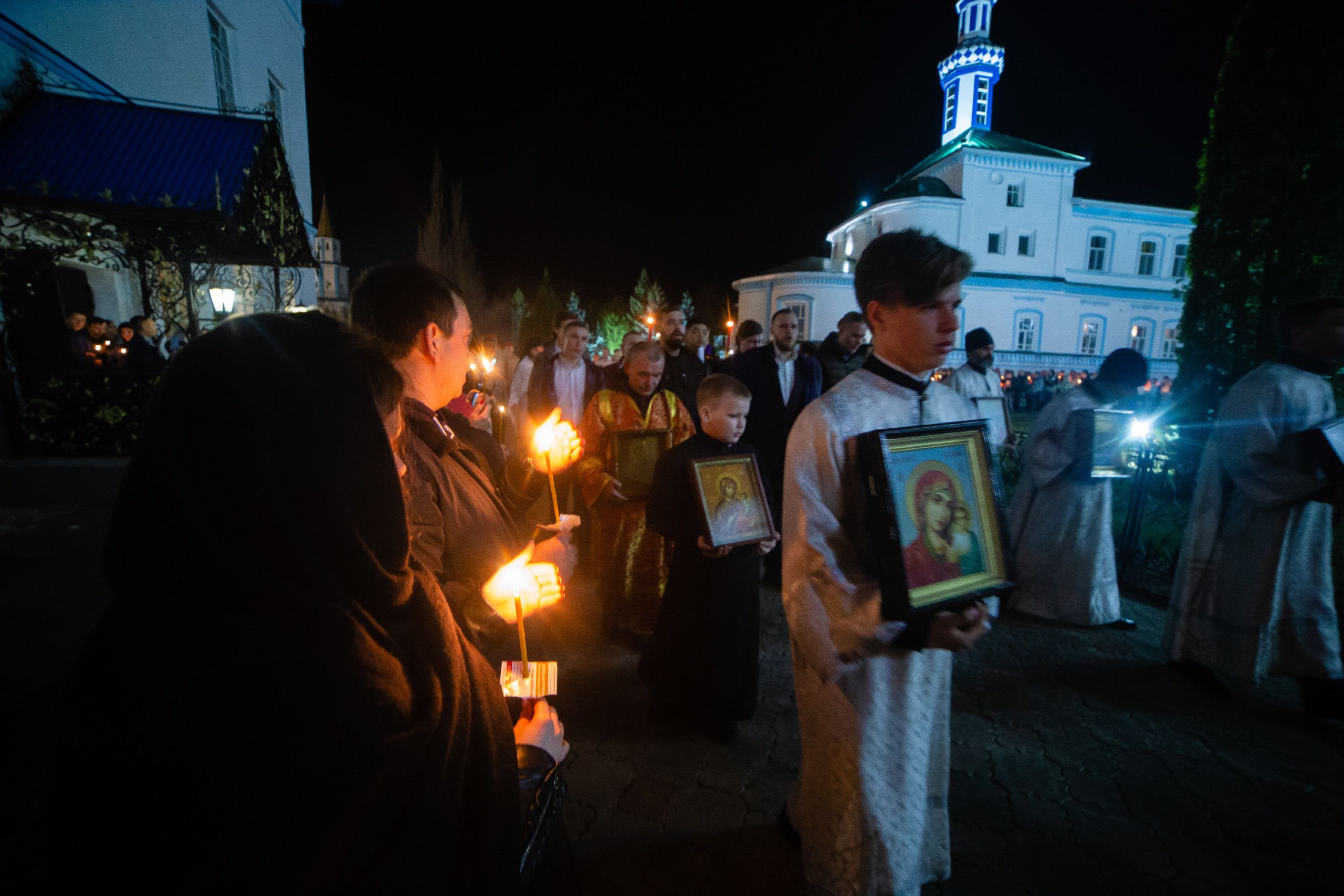 Ровно в полночь при пении стихиры «Воскресение Твое, Христе Спасе…» духовенство и многочисленные верующие прошли крестным ходом по территории монастыря. Во время пения тропаря Пасхи Христовой «Христос воскресе из мертвых…» над Раифской обителью раздались залпы праздничного салюта.