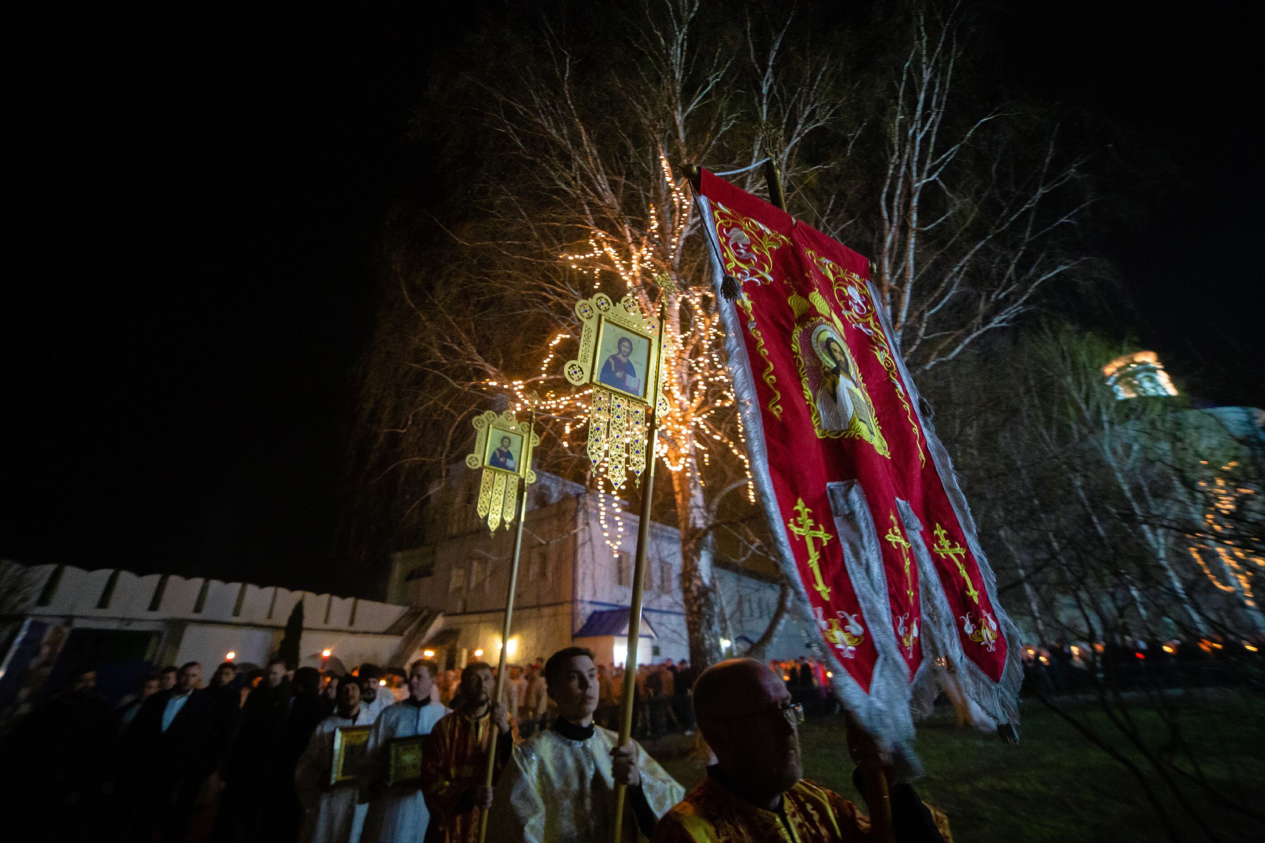 Пасхальные богослужения предварялись полунощницей, за которой на середине храма был прочитан канон Великой Субботы. После 9-й песни канона Святая Плащаница была внесена в алтарь и положена на престол, где будет оставаться до отдания Пасхи.