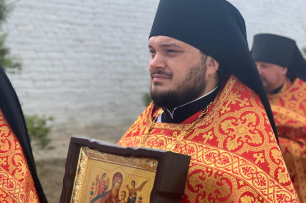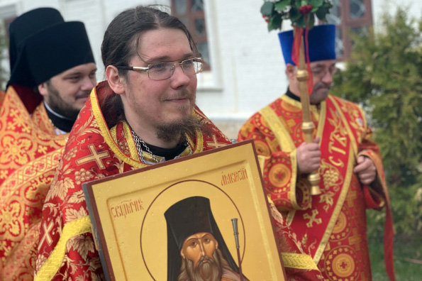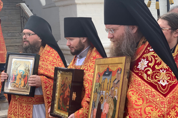 По окончании Литургии состоялся пасхальный крестный ход вокруг новоосвященного храма в честь основателя Свияжского монастыря.