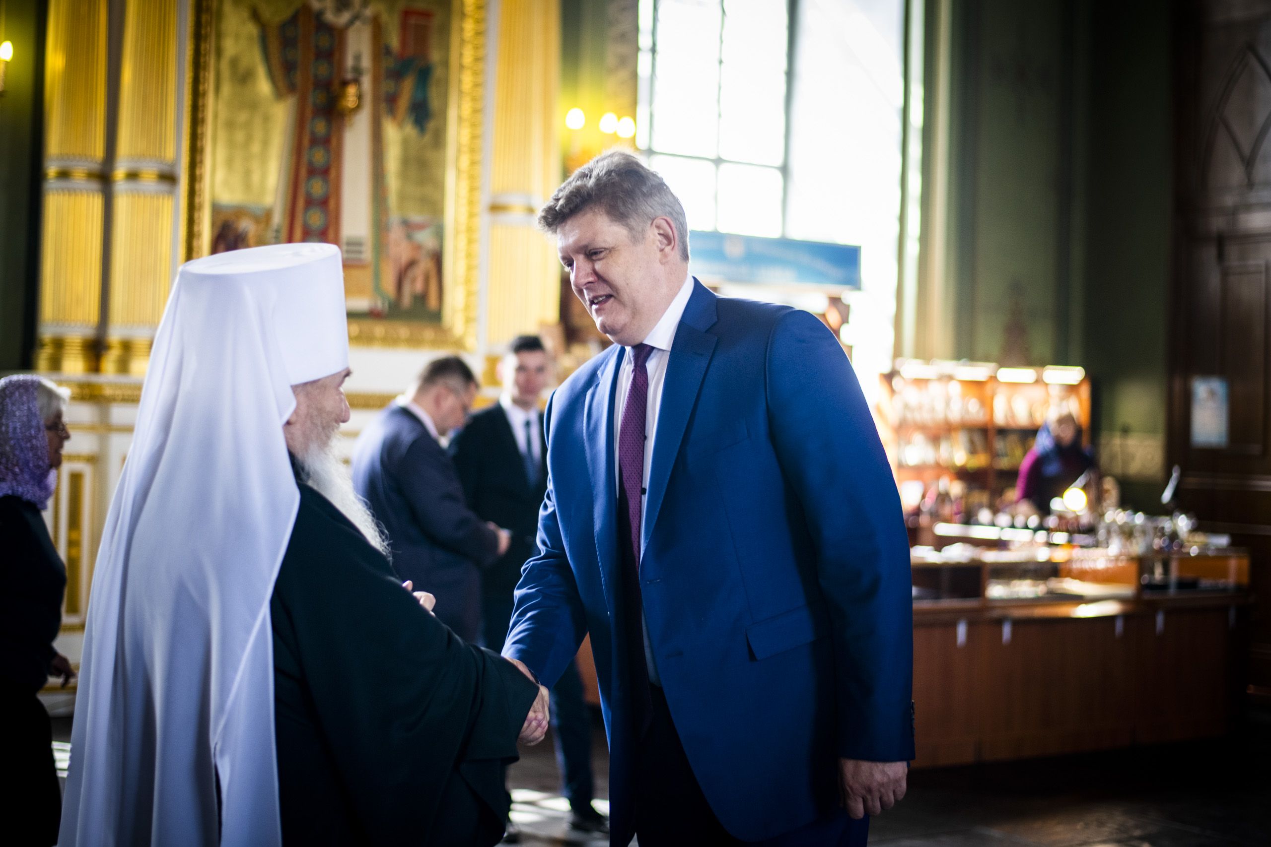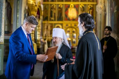 Его Высокопреосвященство ознакомил политика с современной жизнью Татарстанской митрополии, подробно остановившись на важнейших направлениях церковной деятельности. Особое внимание митрополит Феофан уделил сотрудничеству митрополии с Республиканским фондом «Возрождение» в деле сохранения историко-культурного наследия в регионе и проекту «Культурное наследие: древний город Болгар и остров-град Свияжск». В рамках данного проекта в течение ряда лет воссоздаются православные памятники и исторические здания.