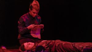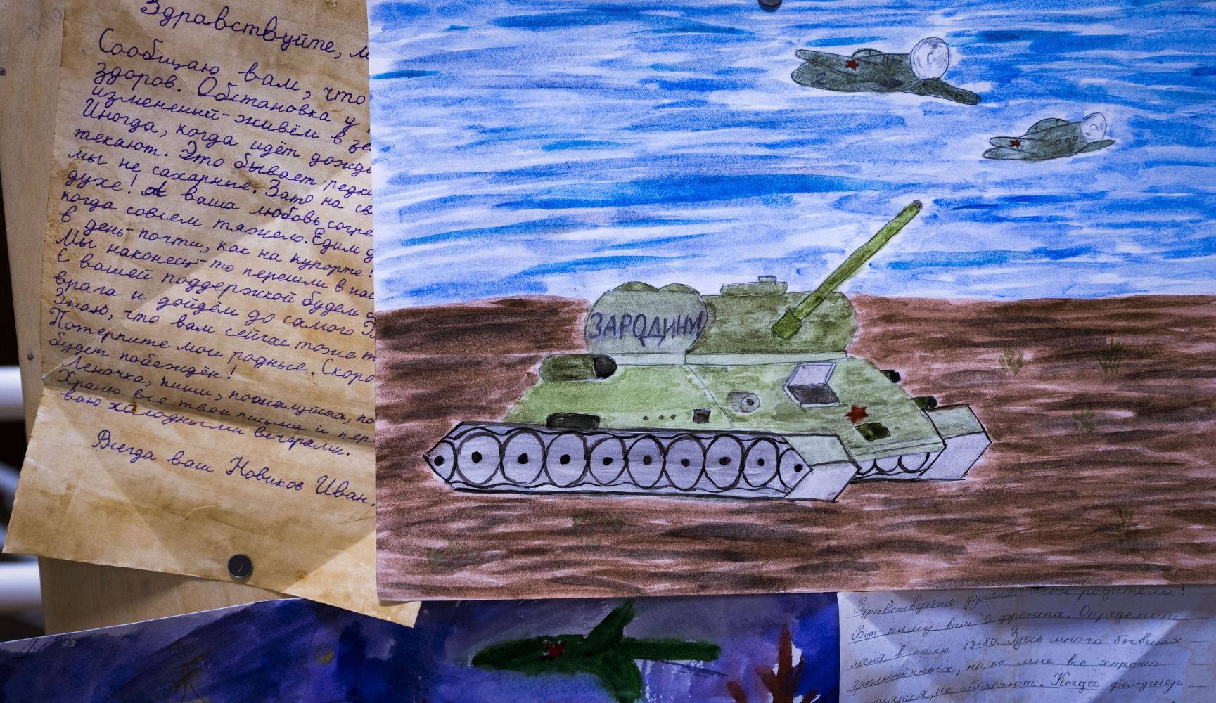 Около входа в зал создатели постановки разместили стенды с настоящими военными письмами, которые помогли зрителям погрузиться в атмосферу далеких и трагических лет.