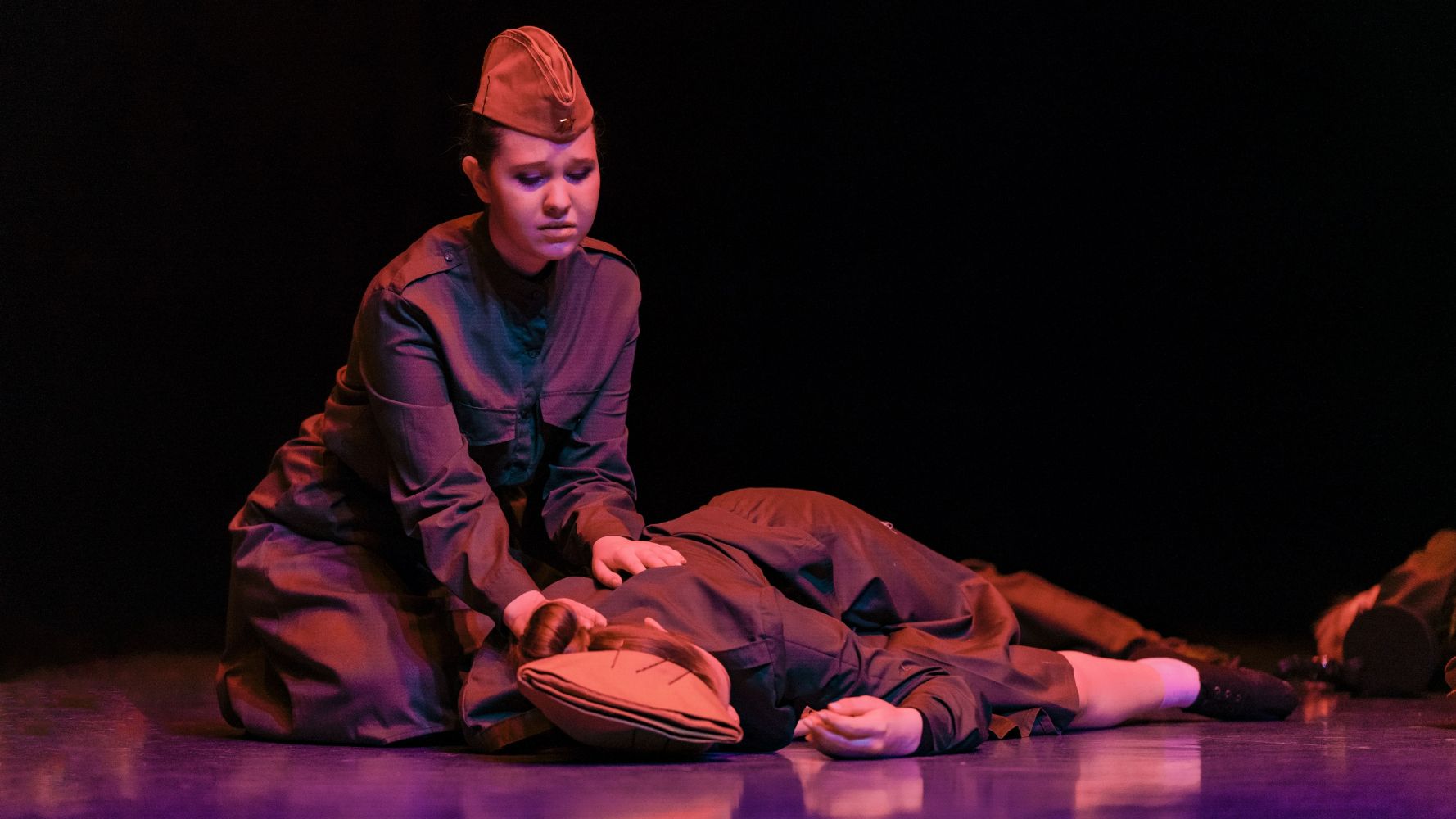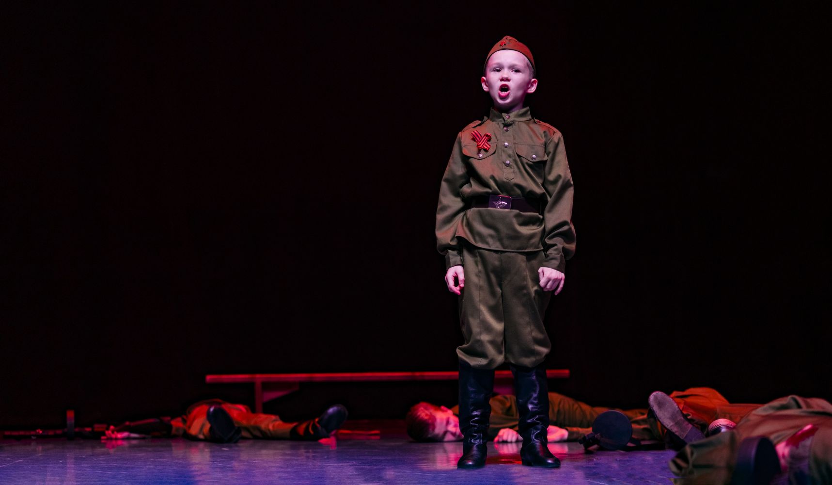 Зрители увидели различные сцены из военной жизни — обстрелы, оказание помощи раненым, разговоры вдов и детей, а в заключение — возвращение героев домой.