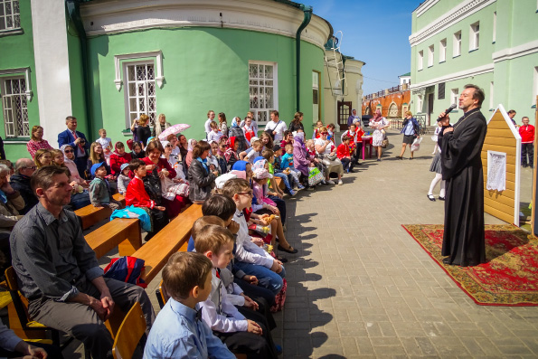 Отец Иоанн поприветствовал верующих и поздравил их с Пасхой и Фоминой Неделей. Священник отметил, что миссия педагогов состоит в том, чтобы укреплять в сердцах детей веру в Бога и прививать им любовь к Церкви Христовой. По его словам, подобные праздничные мероприятия позволяют добиться поставленных целей.