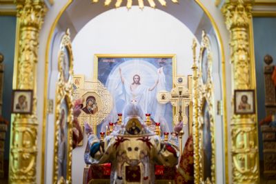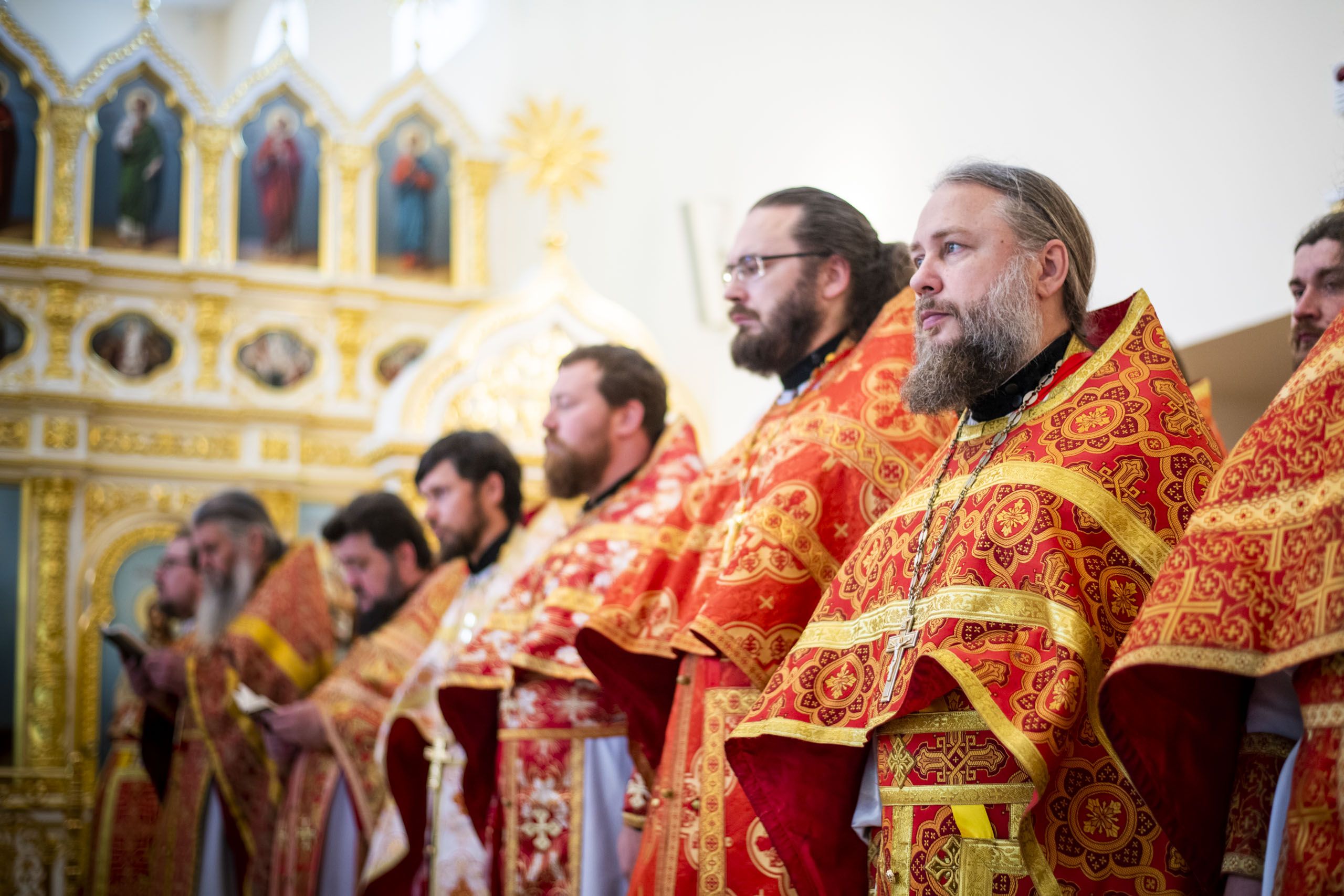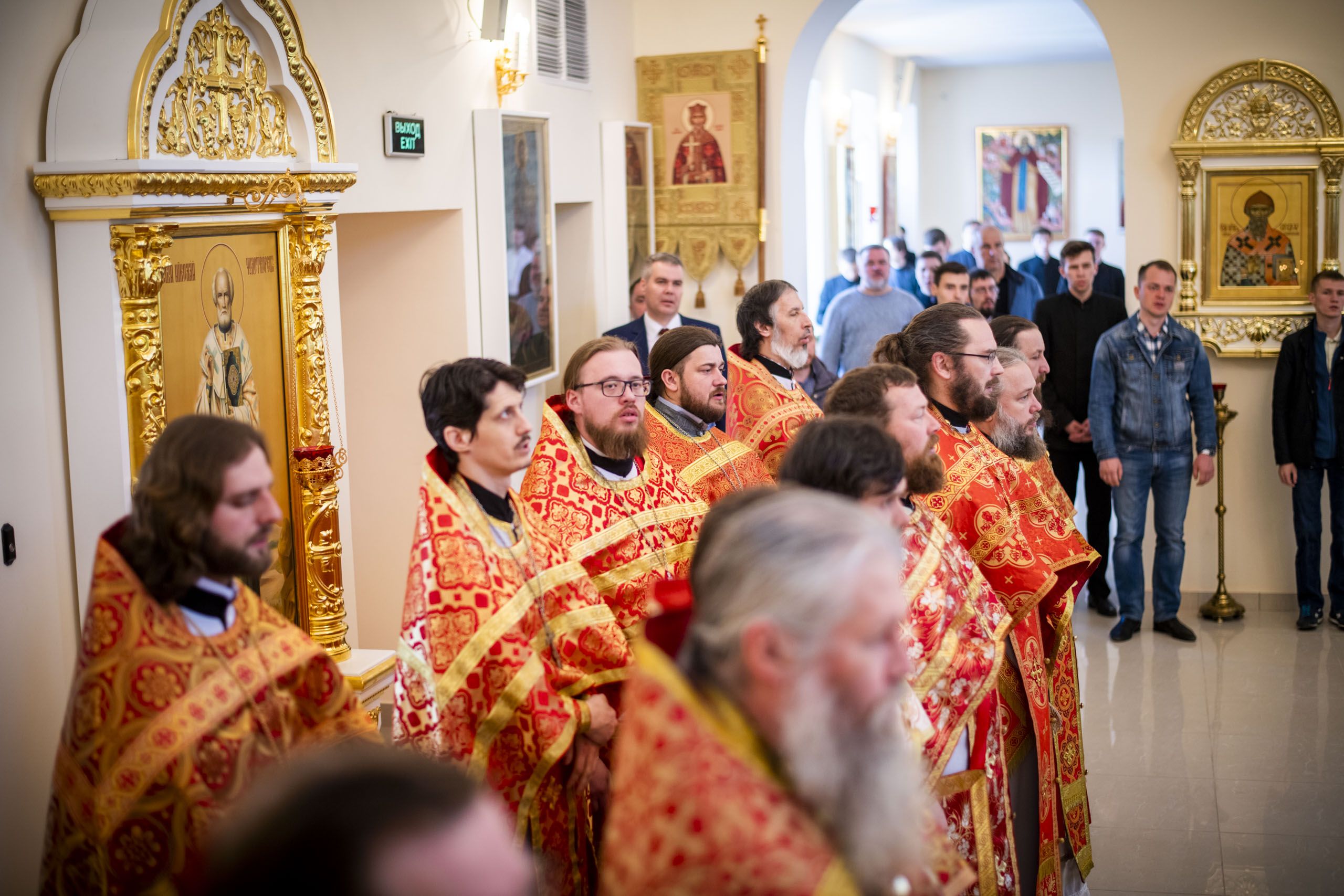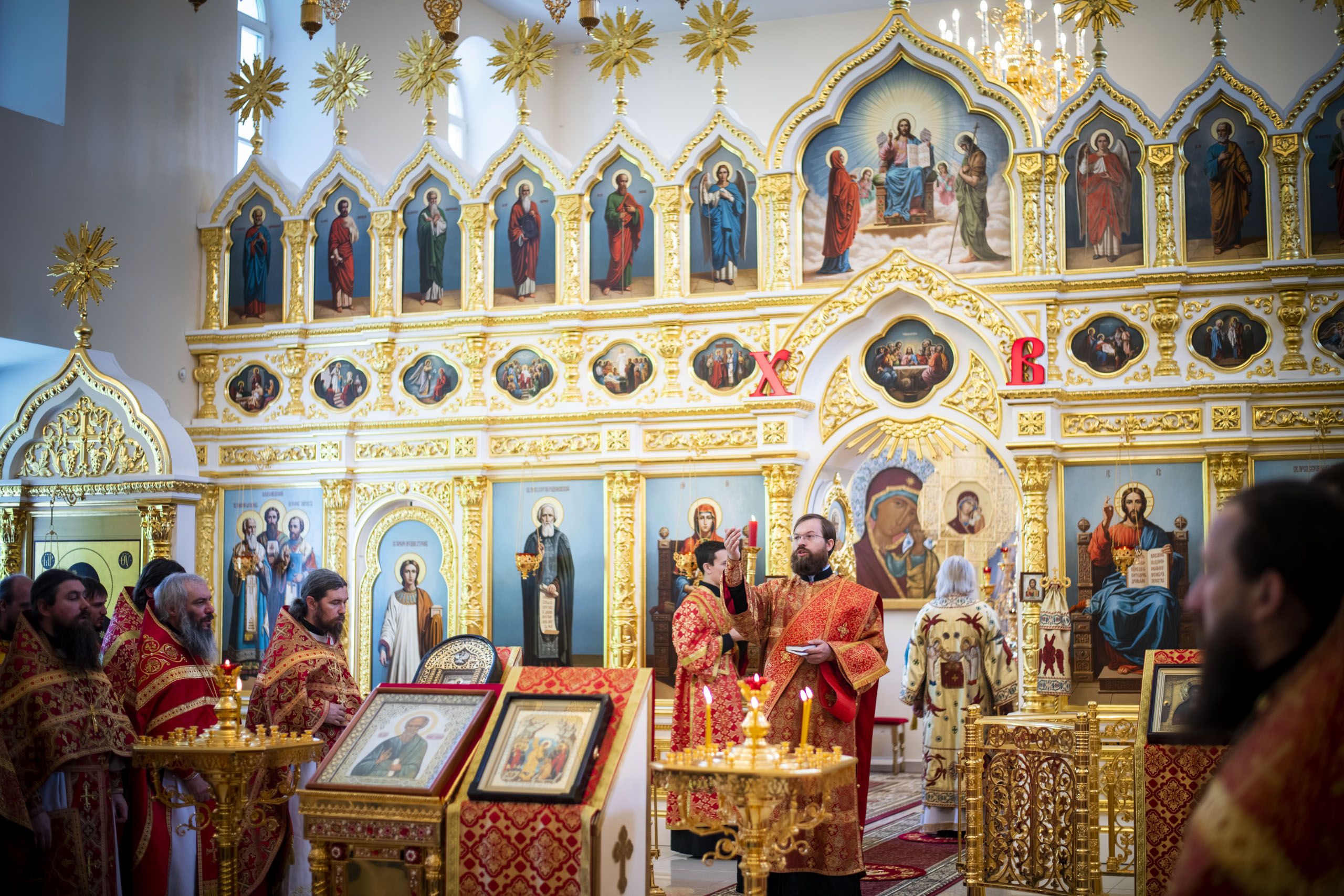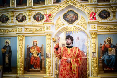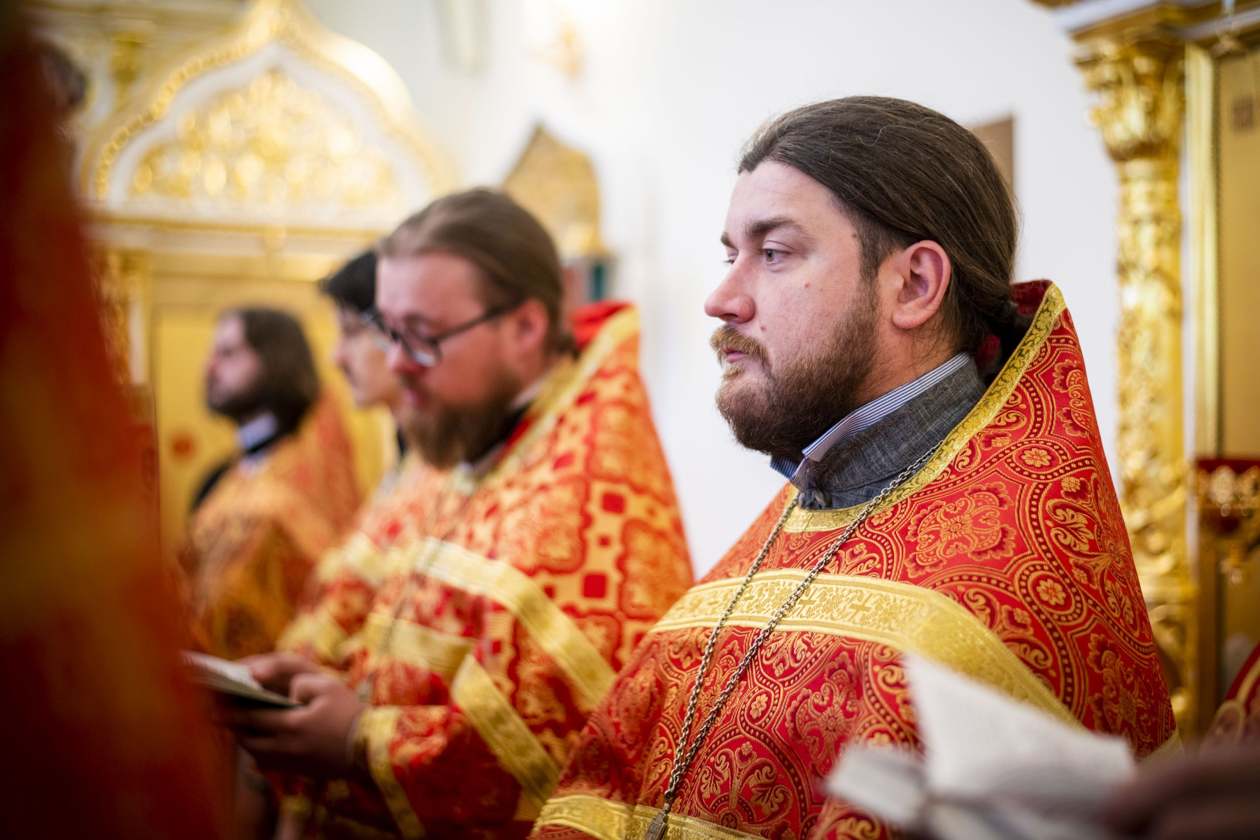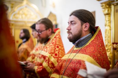После запричастного стиха проповедь произнес настоятель Никольского кафедрального собора города Казани протоиерей Иоанн Барсуков.