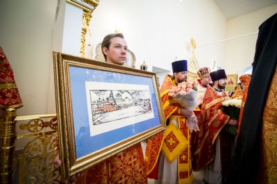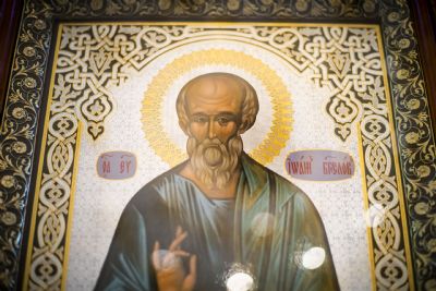По заамвонной молитве духовенство пропело на середине храма славление евангелисту Иоанну, архипастырь прочитал молитву святому апостолу.