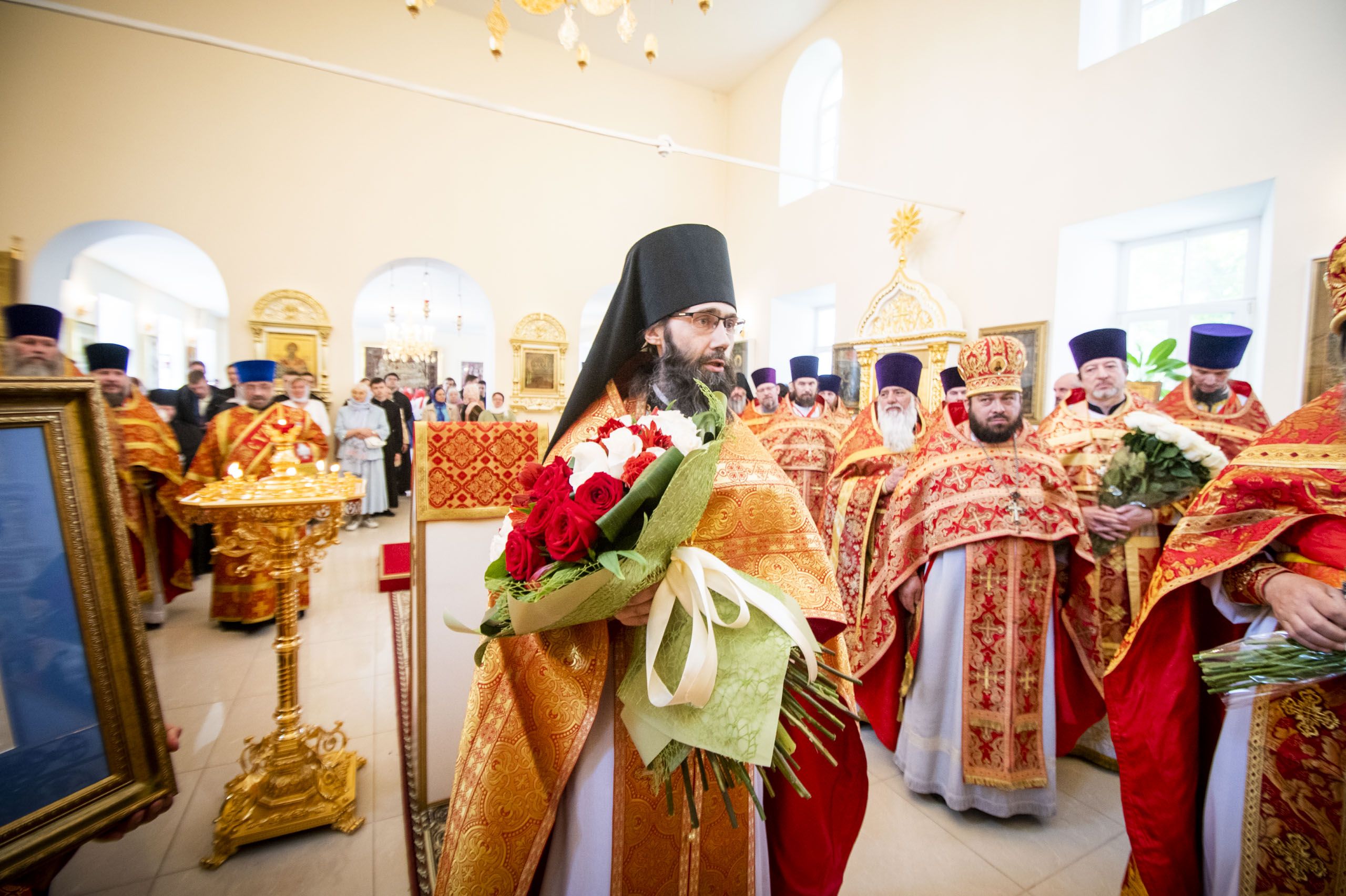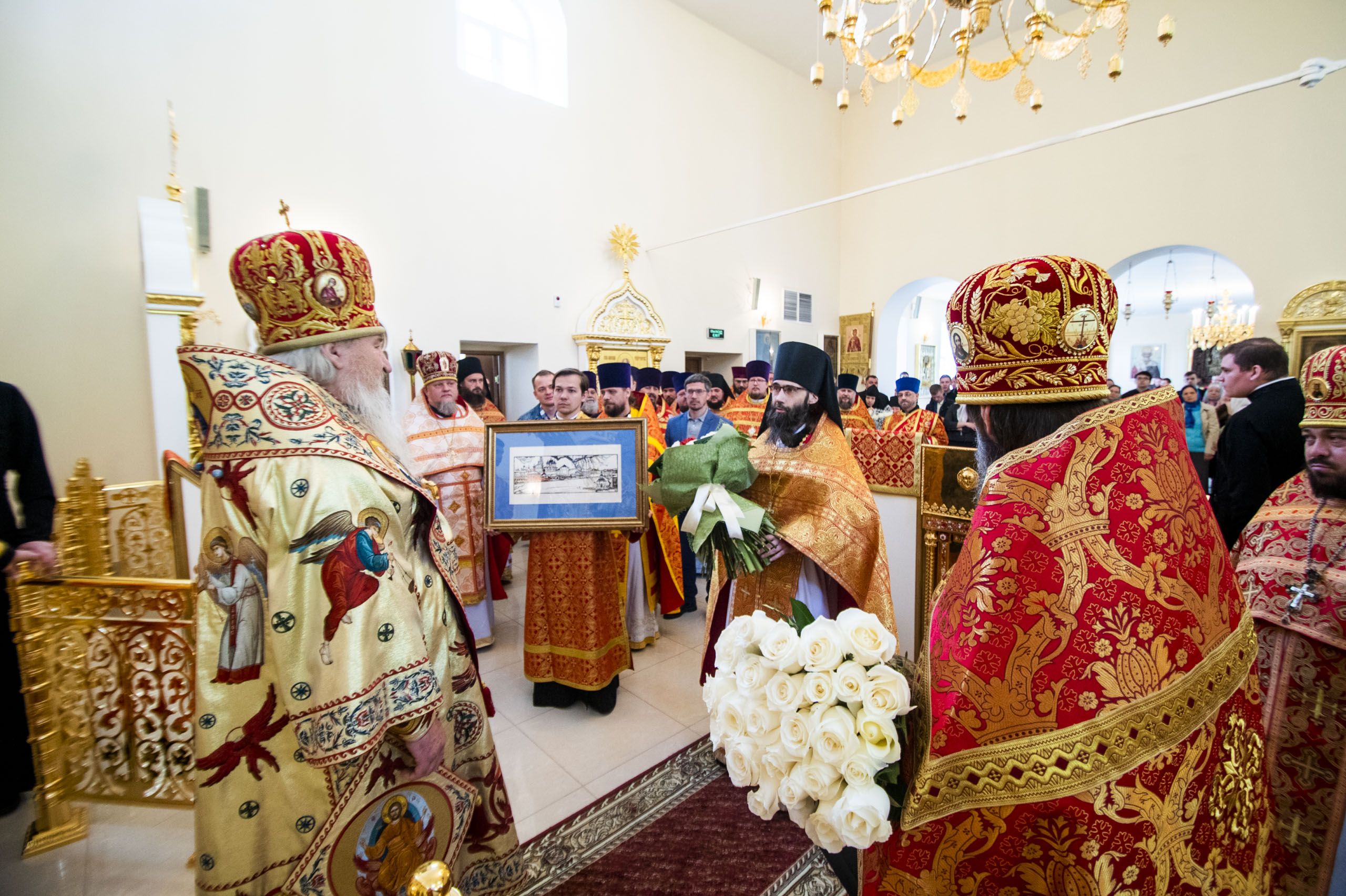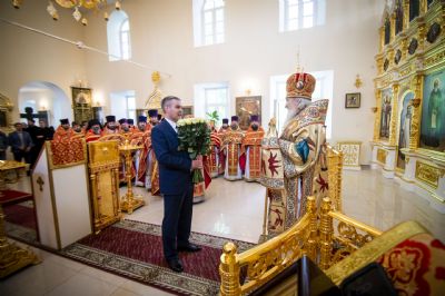 По завершении Литургии от лица духовенства Казанской епархии правящего архиерея приветствовал благочинный Закамского округа протоиерей Андрей Дубровин: