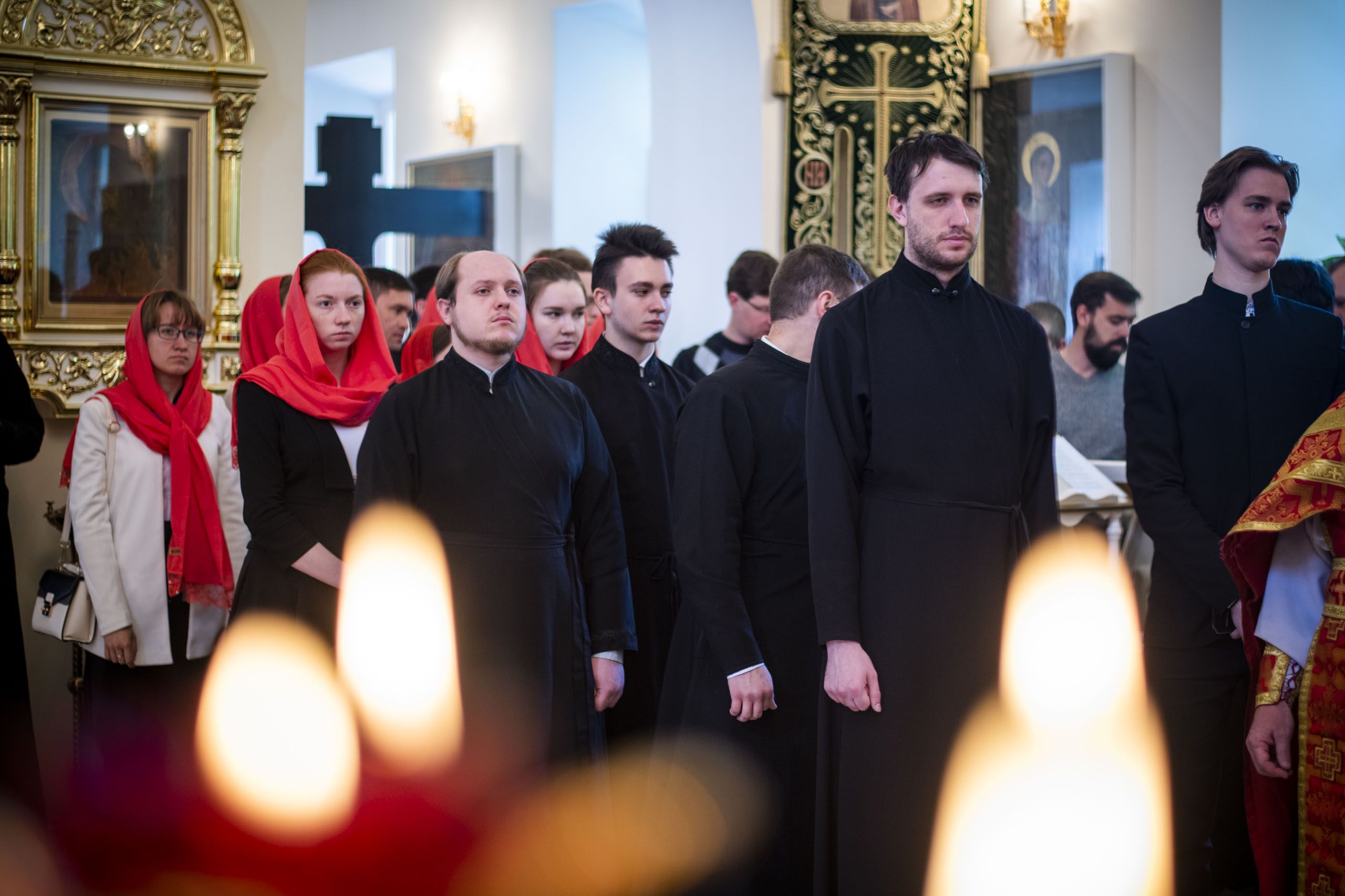 Песнопения исполнялись архиерейским мужским хором под управлением Дениса Рогова и смешанным хором Казанской духовной семинарии под управлением Вероники Архиповой.