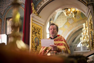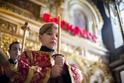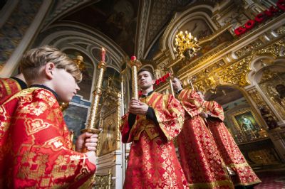 Песнопения исполнялись смешанным хором храма под управлением Николая Беляева.