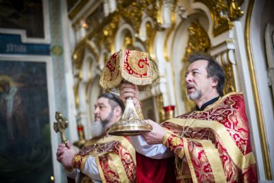 Божественную литургию совершил настоятель храма протоиерей Иоанн Барсуков. Ему сослужили клирики прихода — протоиерей Николай Тимофеев и иерей Арсений Леушин. Диаконский чин возглавил протодиакон Александр Спиридонов.