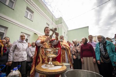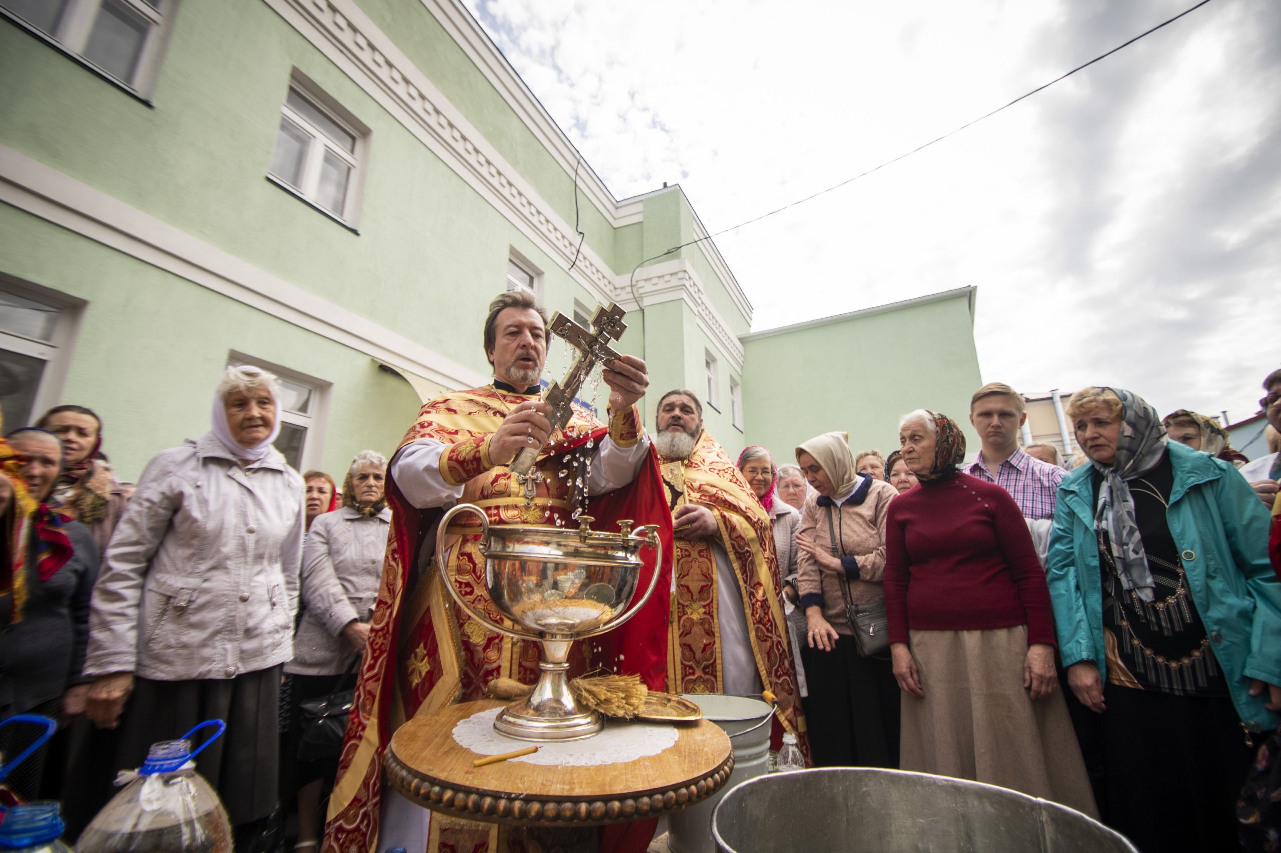 «Сегодня за Литургией читалось евангельское зачало, из которого мы узнали, что Господь в преполовение ветхозаветного праздника Кущей вошел в храм и рассказал о Своем Божественном посланничестве и таинственной воде: „Кто жаждет, пусть идет ко Мне, и Я дам ему воду бессмертия“. Поэтому во время крестного хода мы совершили чин освящения воды, а за богослужением пропели: „Жаждущую душу мою благочестия напой водами“», — сказал священник.