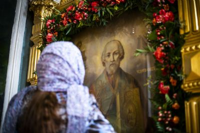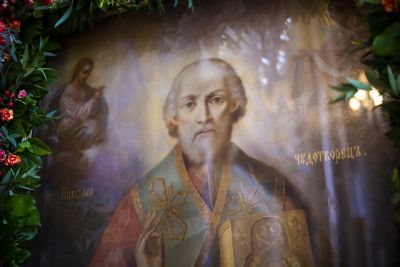 После пения запричастного стиха протоиерей Николай Тимофеев произнес проповедь. Священник рассказал верующим о подвиге святителя Николая Чудотворца и чудесах, связанных с его именем.