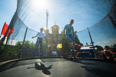После Божественной литургии в Воскресенском храме, которую возглавил временно управляющий Чистопольской епархией митрополит Казанский и Татарстанский Феофан, на Соборной площади состоялось торжественное открытие фестиваля.