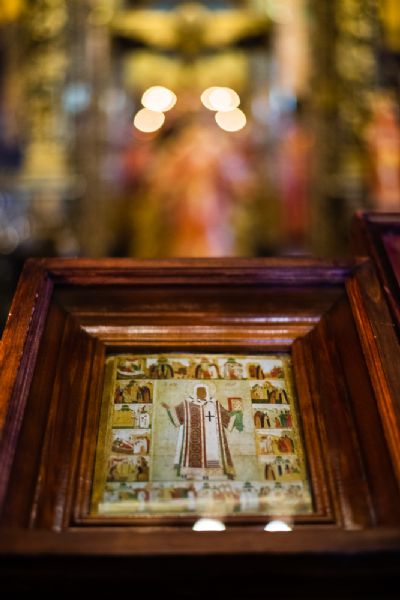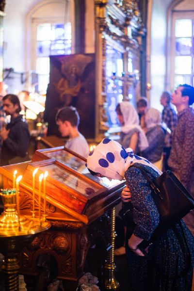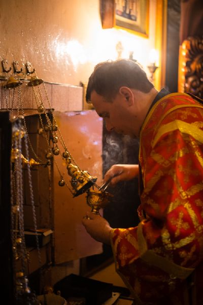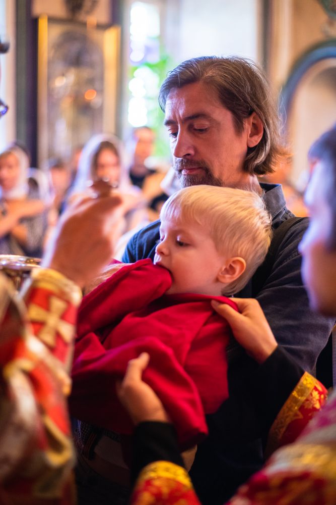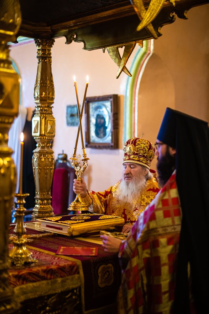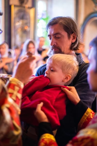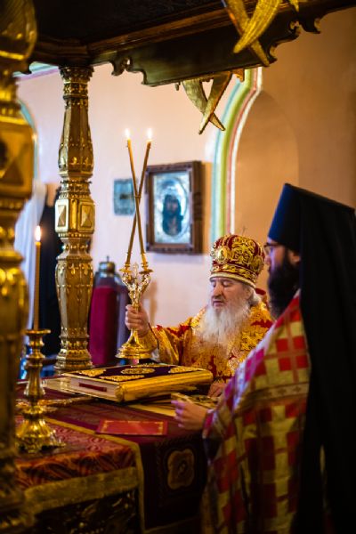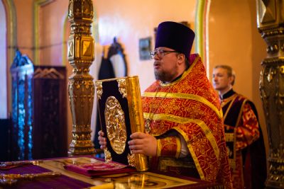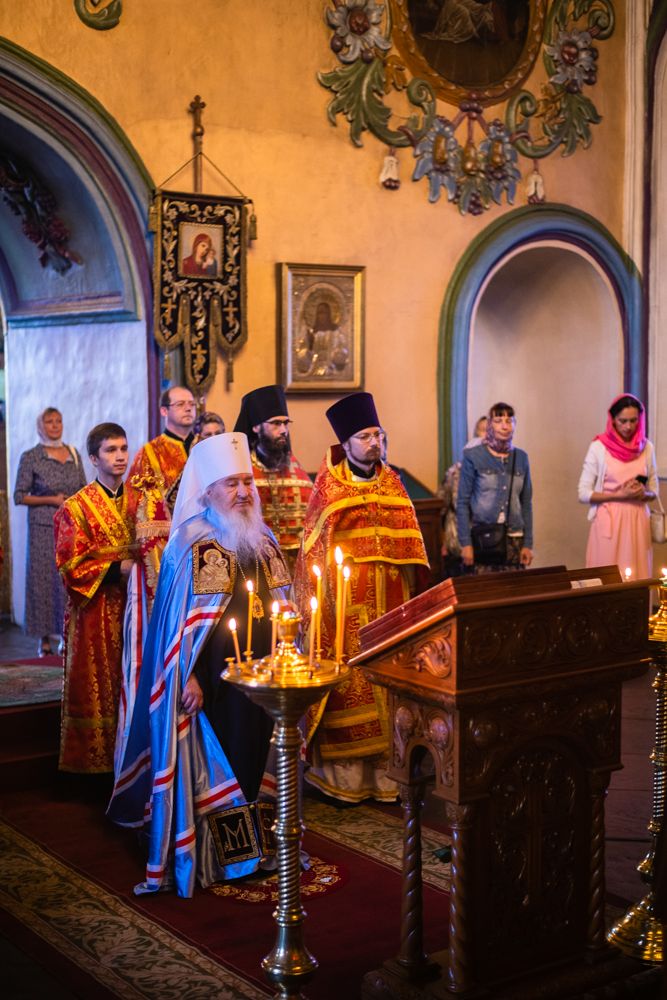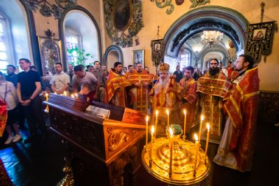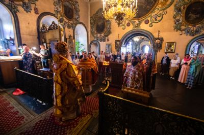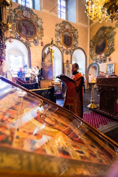 После чтения заамвонной молитвы духовенством на середине храма перед праздничной иконой было пропето славление святителю Алексию Московскому, память которого совершается в этот день.