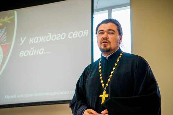 «Мы находимся в необычном учебном заведении. Здесь обучаются будущие пастыри, церковнослужители, регенты и певчие. И тема патриотизма, связи поколений, памяти о Великой Отечественной войне очень важна для становления духовной личности», — отметил священник.