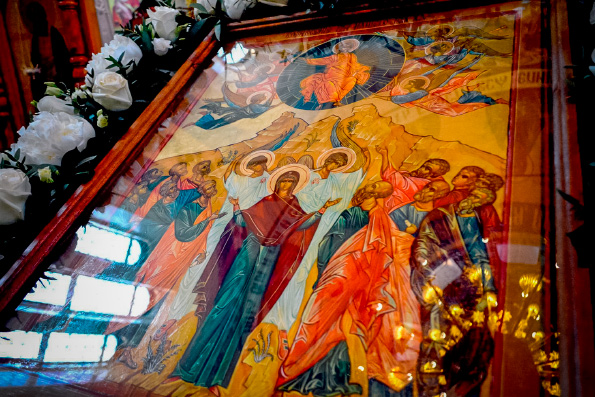 Во время Литургии отец благочинный обратился к верующим с проповедью о празднике Вознесения Господня.