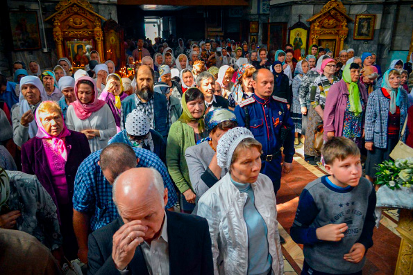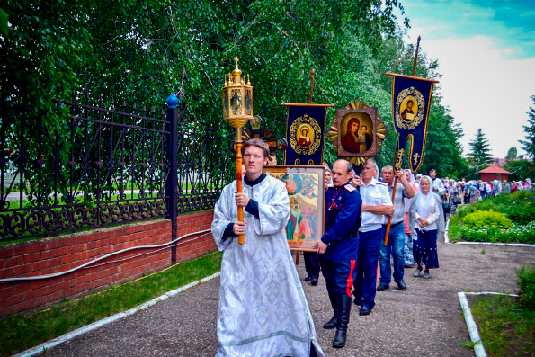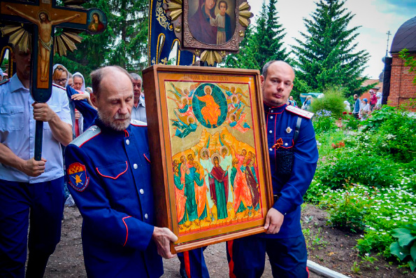 По окончании Литургии состоялся традиционный крестный ход вокруг собора с праздничной храмовой иконой праздника.