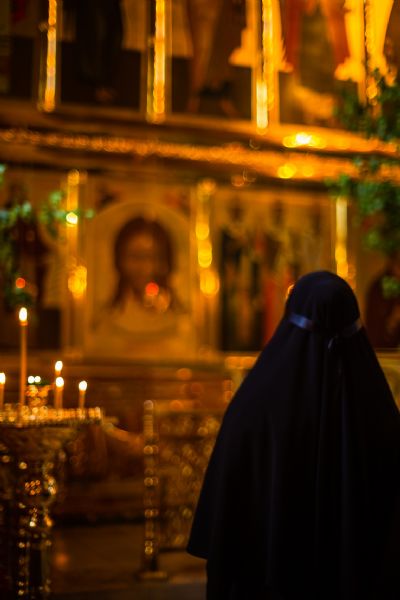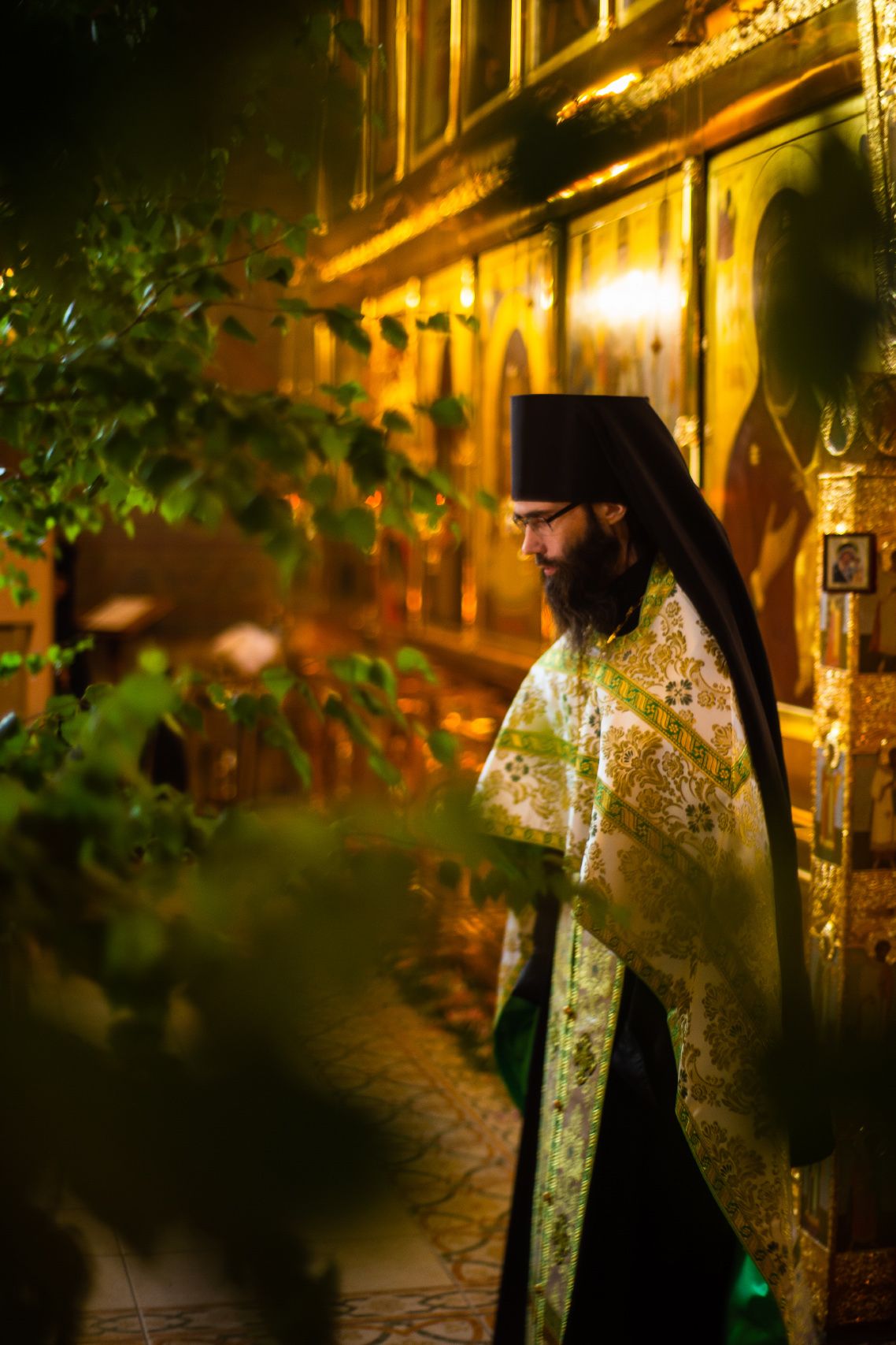 По окончании вечернего богослужения правящий архиерей поздравил духовенство, матушку игумению с сестрами и мирян с праздником Святой Троицы, престольным праздником собора обители, и обратился к молящимся со словом проповеди: