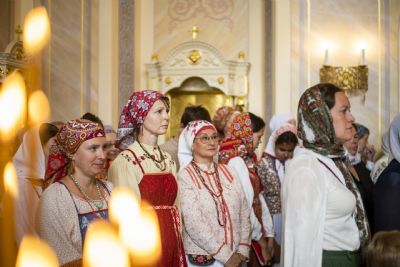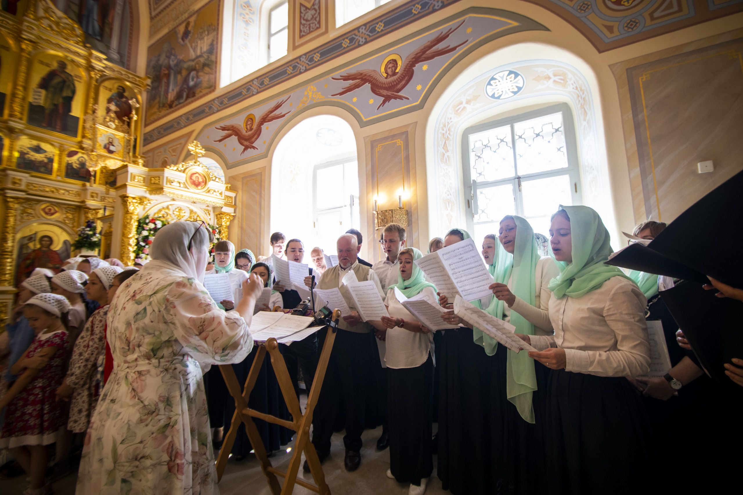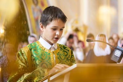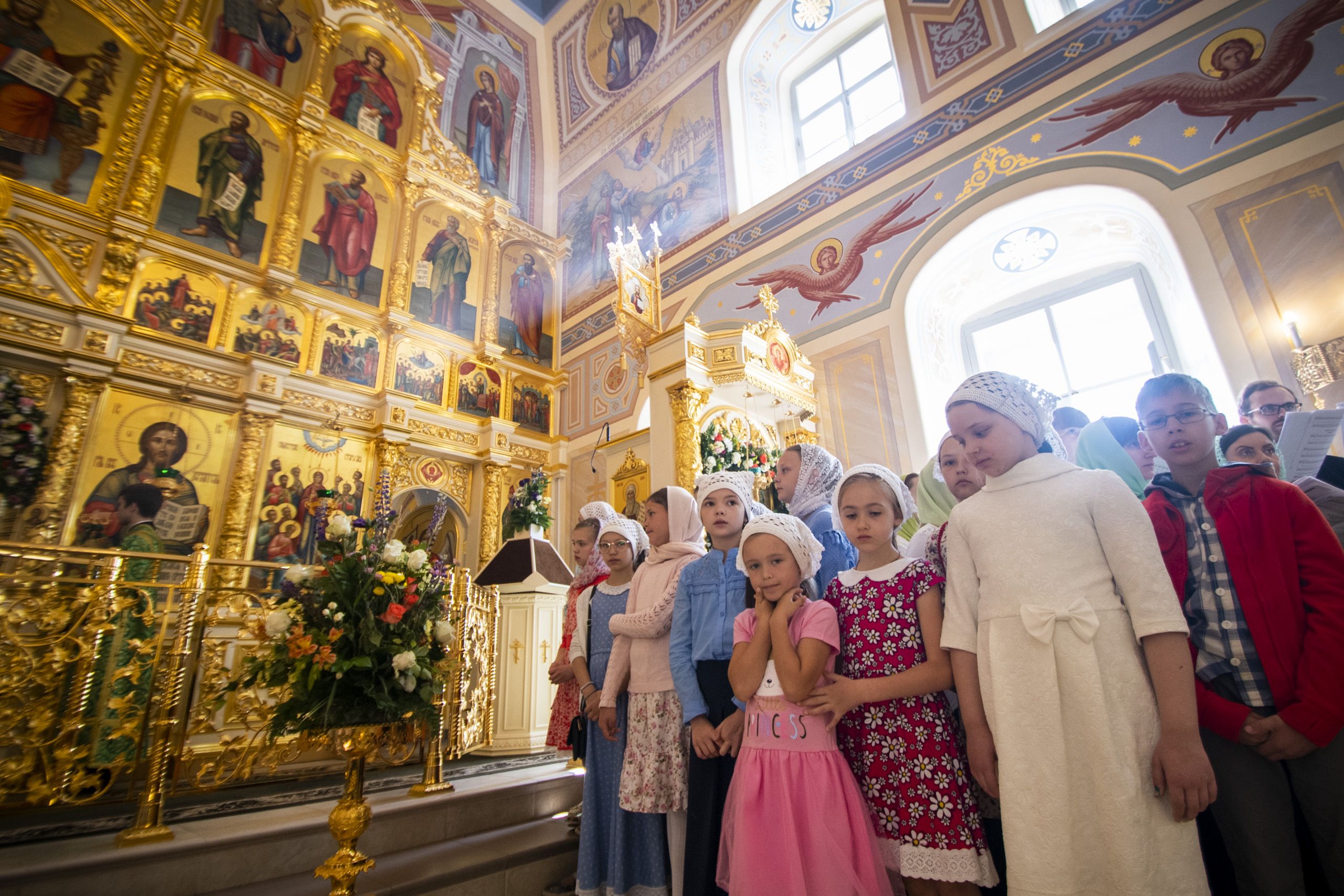 Песнопения богослужения исполнялись смешанным хором Духосошественского прихода и детским хором православной гимназии имени святителя Гурия Казанского под управлением Ольги Ворониной.