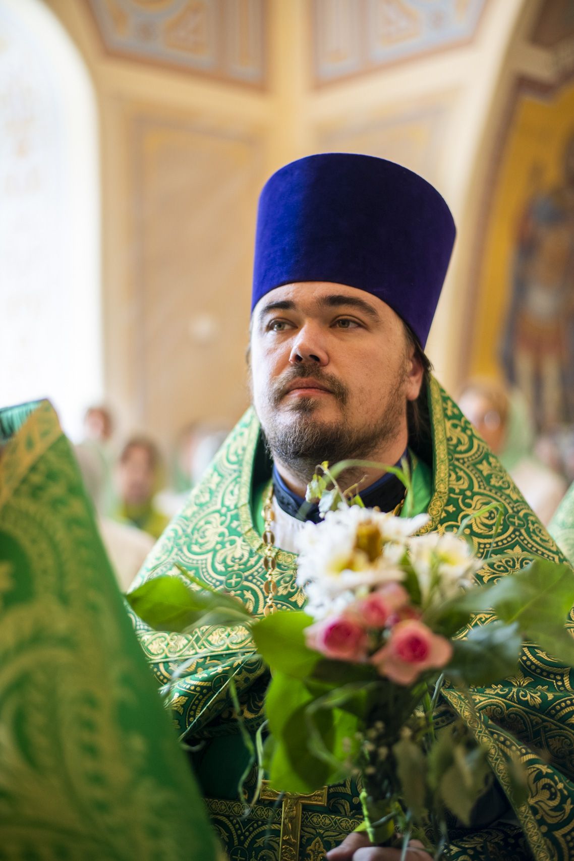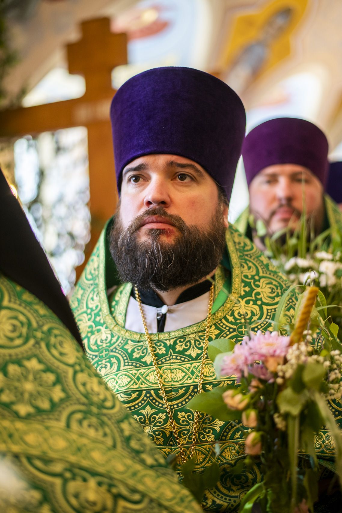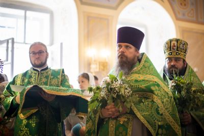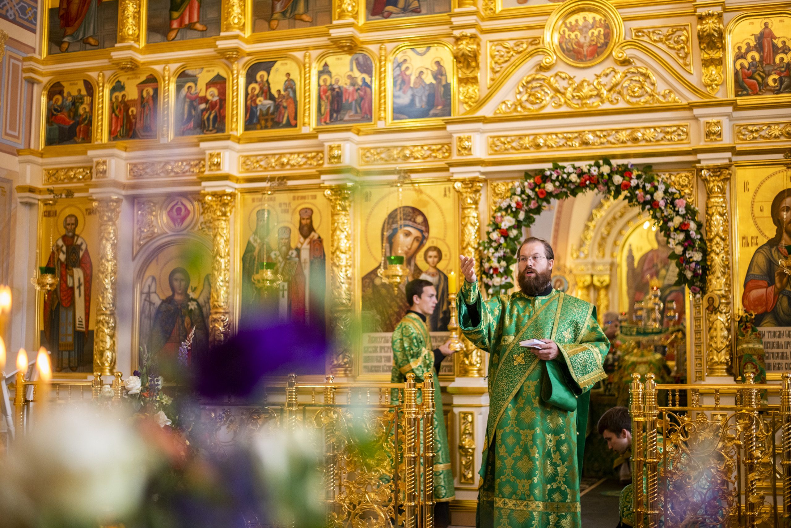 По заамвонной молитве духовенство пропело тропарь, кондак и величание празднику Пятидесятницы.