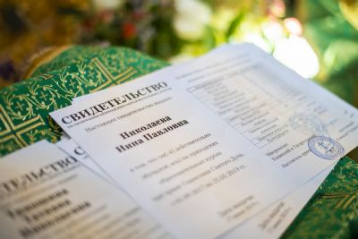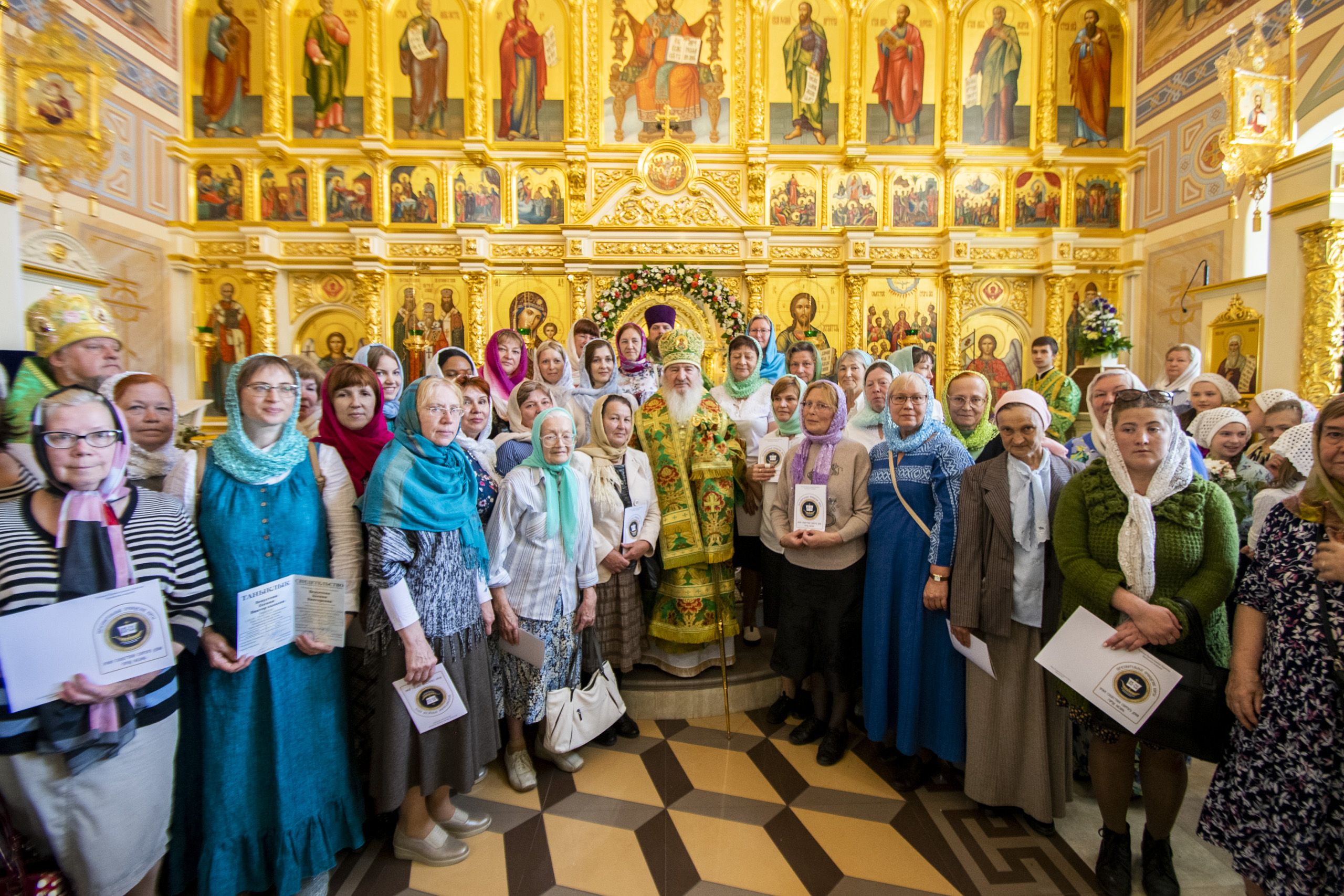 Затем правящий архиерей вручил выпускникам свидетельства об успешном окончании приходских образовательных курсов и курсов татарского языка. Была сделана памятная общая фотография.