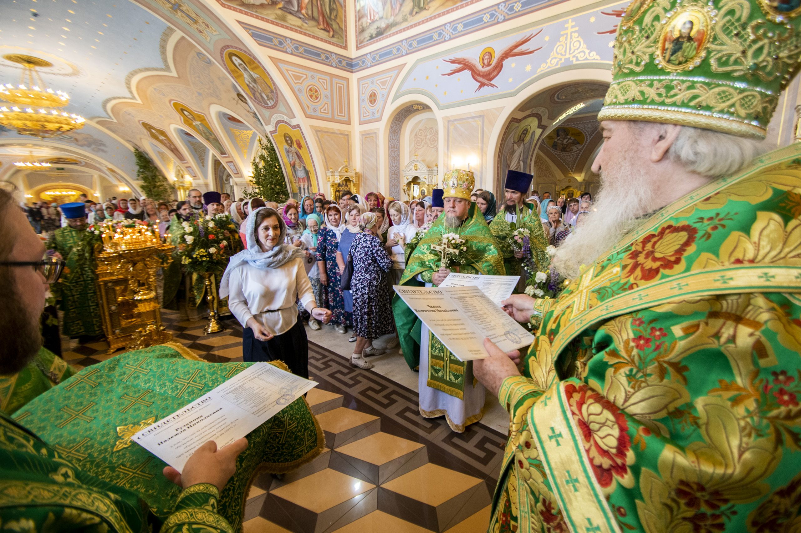 Ныне наш приход приносит некий плод Господу и Церкви — это выпускники курсов катехизаторов и выпускники курсов татарского языка. Думаю, особенно символично, что сегодня по Вашему благословению мы выпускаем людей, которые закончили катехизаторские курсы и курсы татарского языка. Как мы знаем, именно в этот день апостолы получили благодать Святого Духа и начали проповедовать на разных языках — тех языках, которые понимали народы, пришедшие в тот день в Иерусалим.