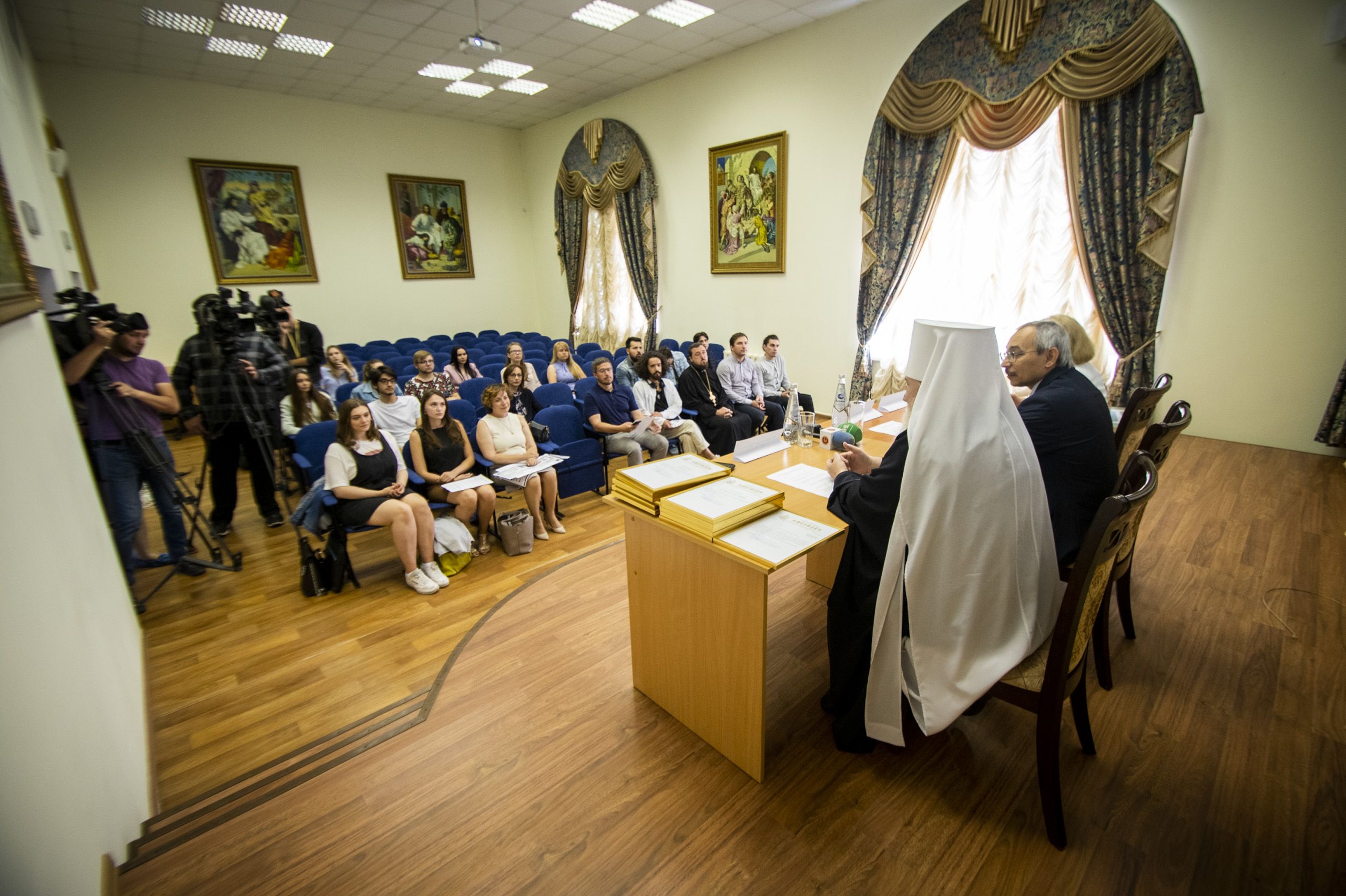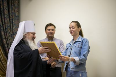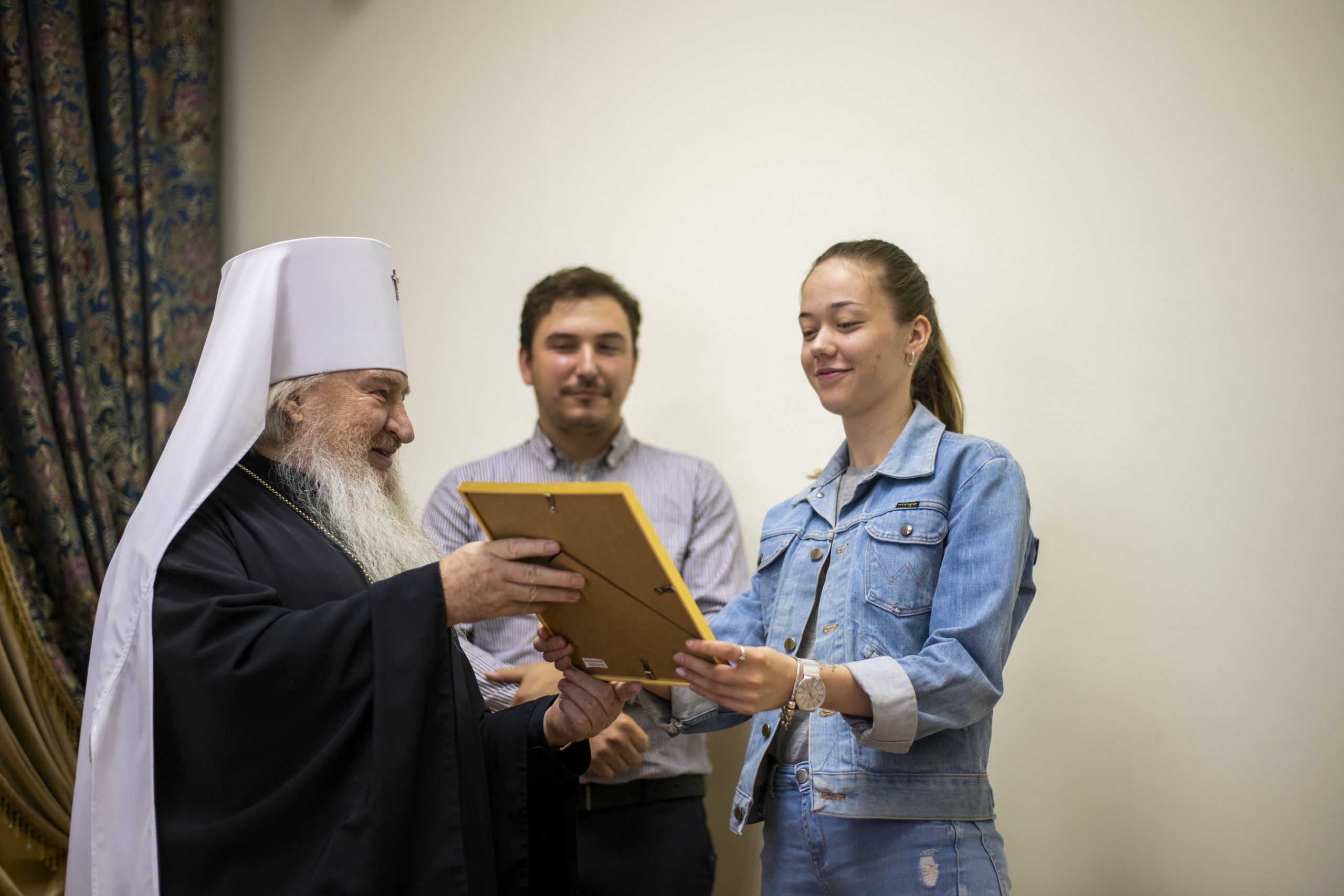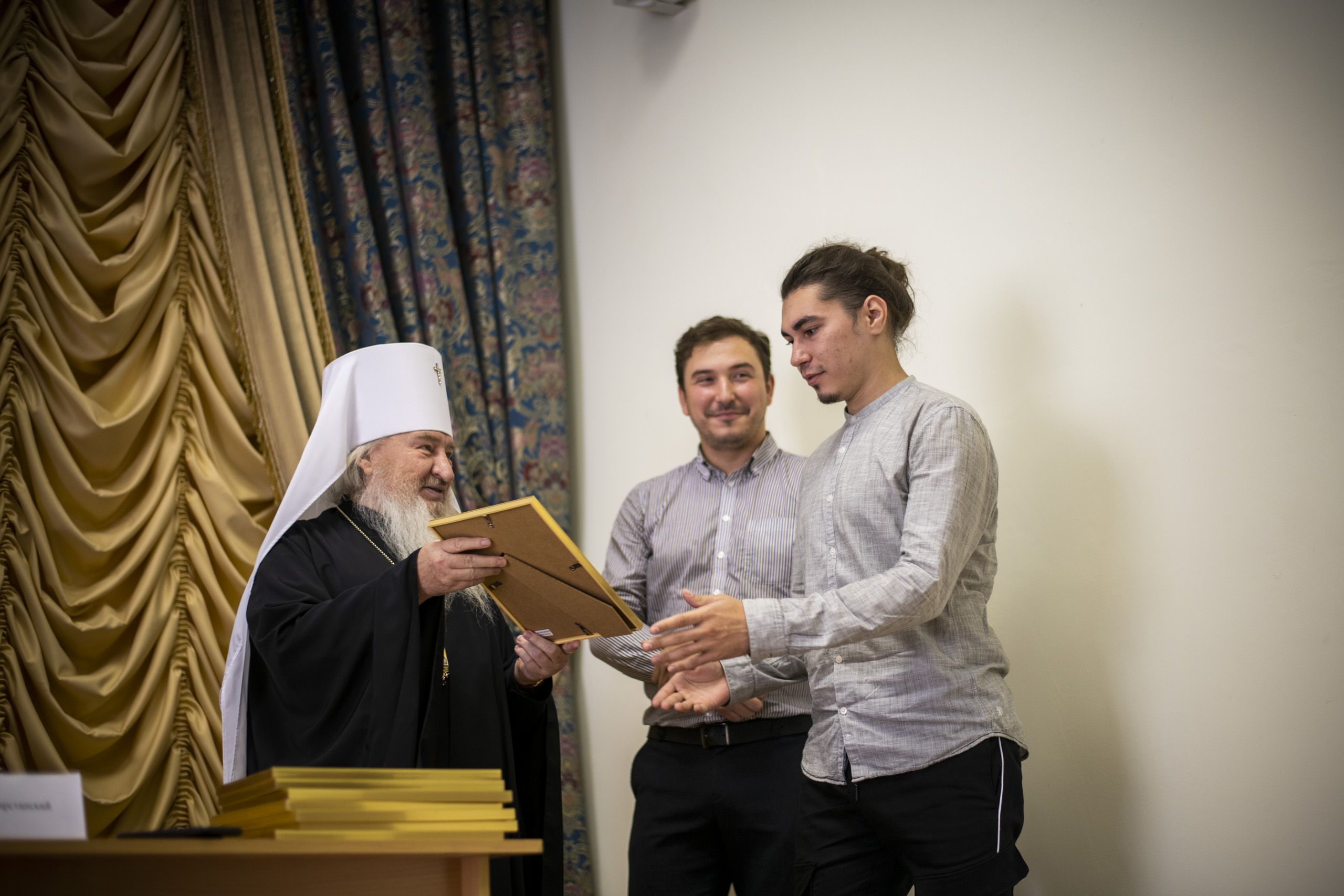 Далее глава Татарстанской митрополии вручил архиерейские грамоты авторам дипломных проектов. В завершение мероприятия архипастырь ответил на вопросы корреспондентов республиканских телеканалов.