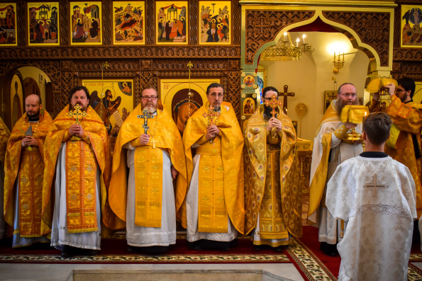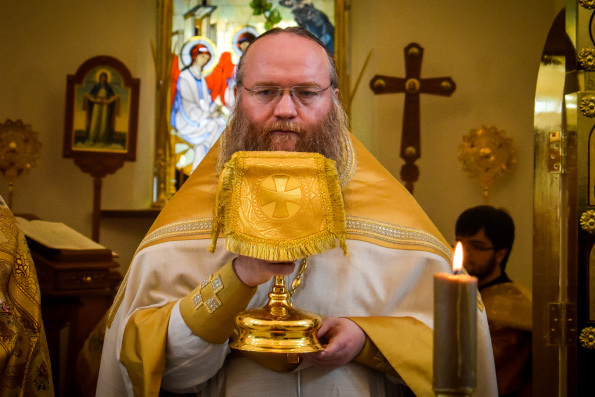 Возглавил богослужение наместник Свияжской обители игумен Симеон (Кулагин). Его Высокопреподобию сослужили настоятель Введенского Кизического мужского монастыря города Казани игумен Пимен (Ивентьев), настоятель свияжского храма равноапостольных Константина и Елены иерей Сергий Коробцов, братия обители в священном сане.