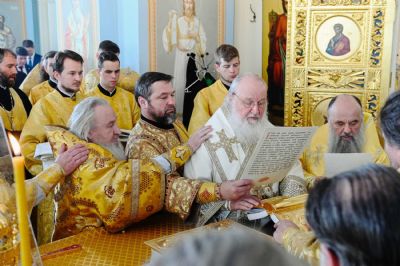 На сугубой ектении были вознесены прошения о единстве Православной Церкви и сохранении Церкви от разделений и расколов. После сугубой ектении Святейший Патриарх Кирилл совершил молитву о мире на Украине.