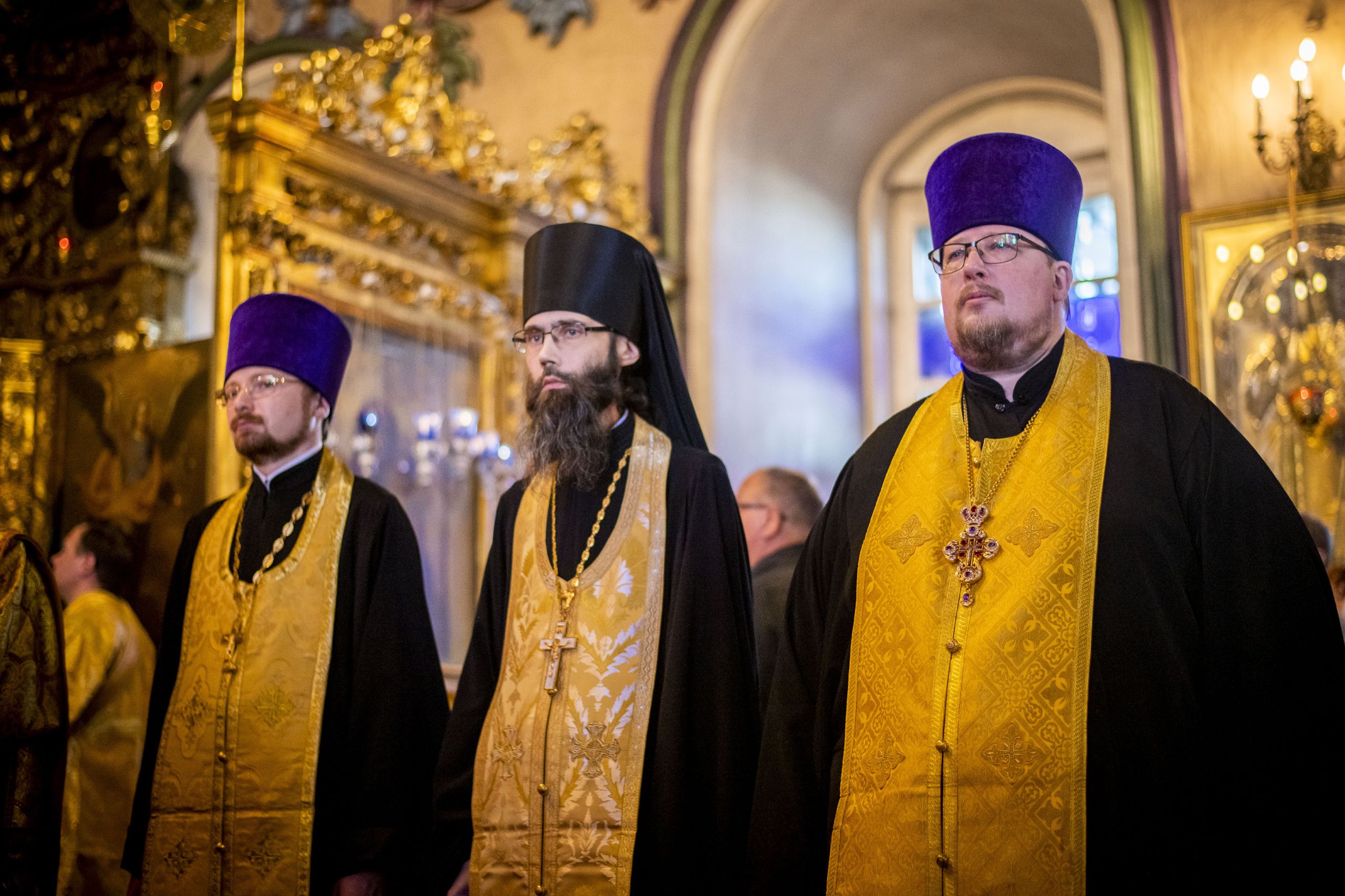 Его Преосвященству сослужили настоятель собора протоиерей Сергий Титов, секретарь Казанского епархиального управления протоиерей Владимир Самойленко, настоятель Введенского Кизического мужского монастыря игумен Пимен (Ивентьев), настоятель Богоявленского собора города Казани протоиерей Алексий Державин, а также клирики собора — протоиерей Олег Рассыпнинский, иерей Антоний Ермошин, иерей Алексий Каст.