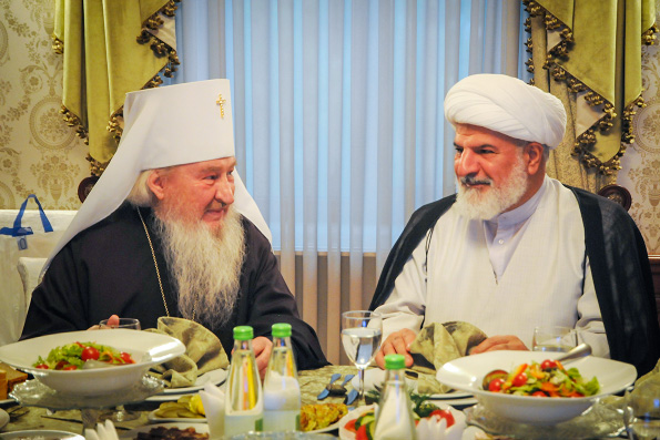 После посещения учебного заведения Русской Православной Церкви состоялся визит иранской делегации в резиденцию Духовного собрания мусульман России. Во встрече приняли участие муфтий Волгоградской области Бата Кифах, заместитель муфтия А. Крганова И. Гайнутдинов, начальник Управления делами Д. Мустафин, руководитель международного отдела М. Мирсаяпов, секретарь Попечительского комитета Межрелигиозного совета России О.В. Блюдов. В ходе беседы были обсуждены темы, касающихся организации жизни мусульманских общин и значения межрелигиозного диалога в современном мире. В честь прибытия иранской делегации был устроен торжественный обед.