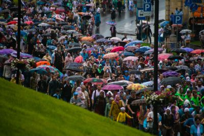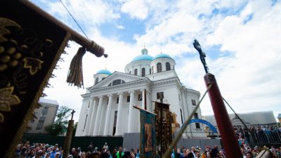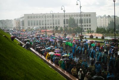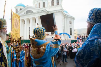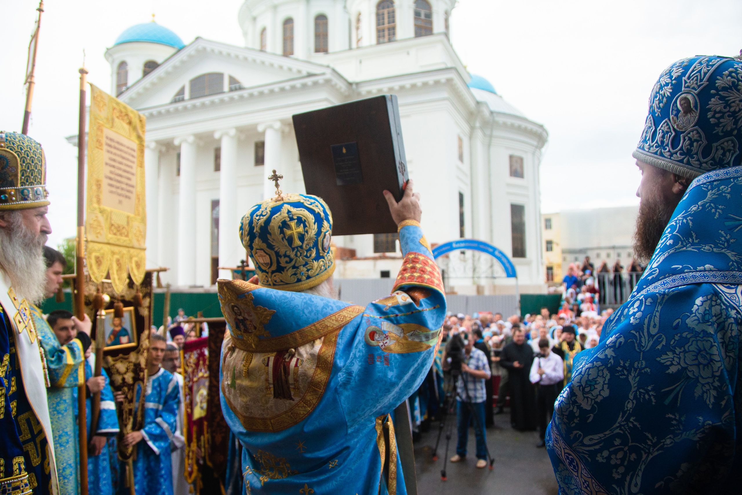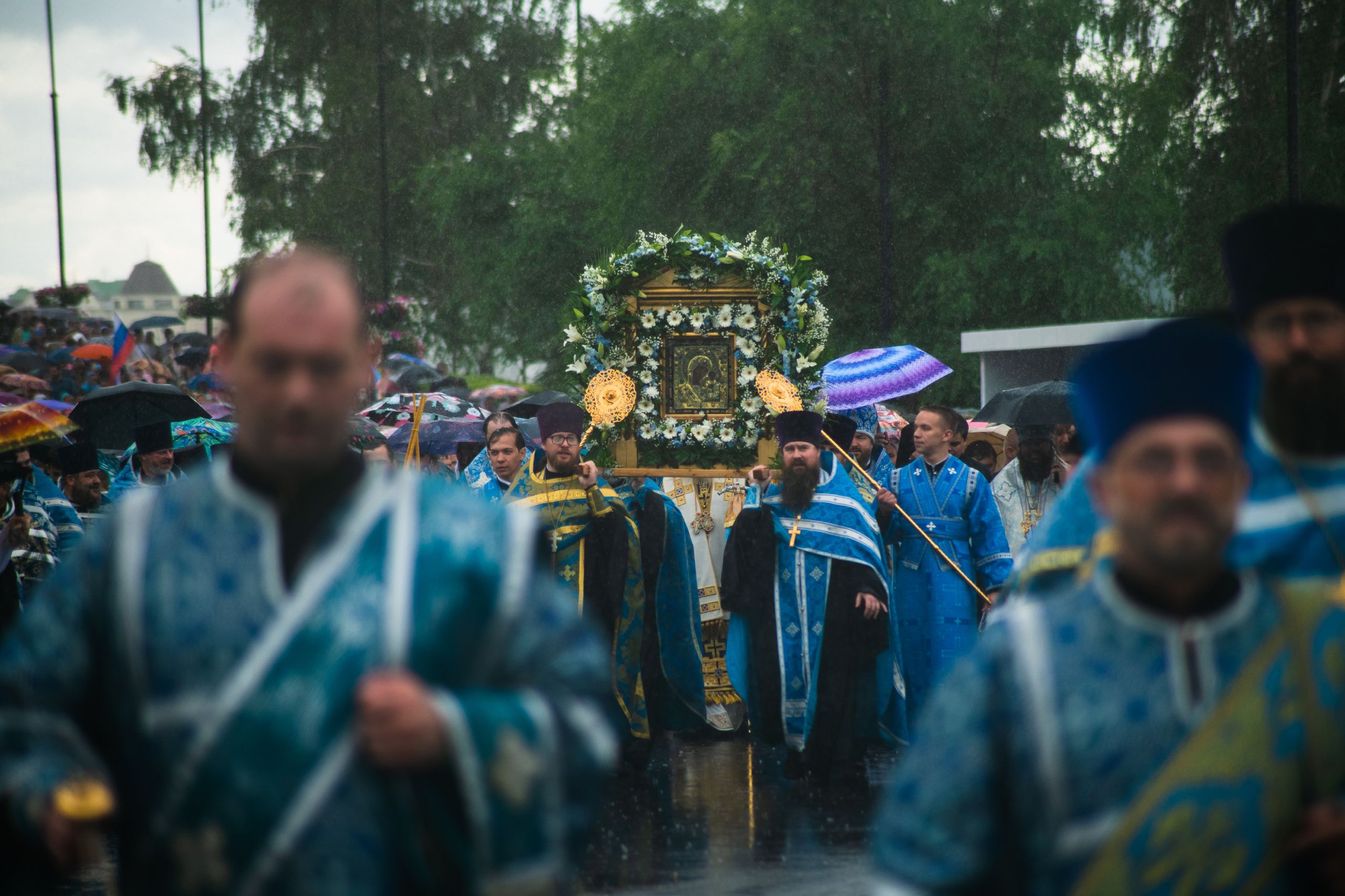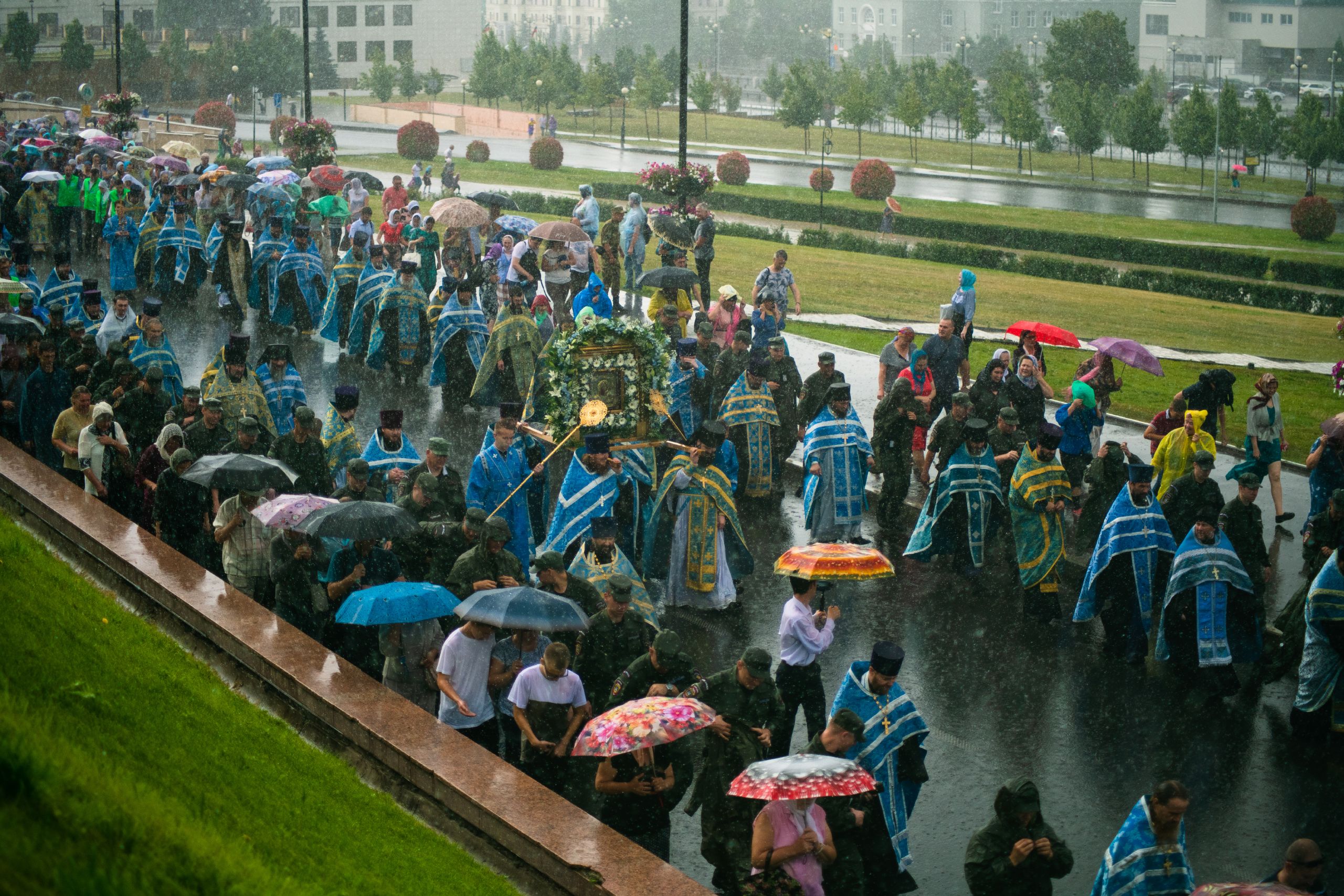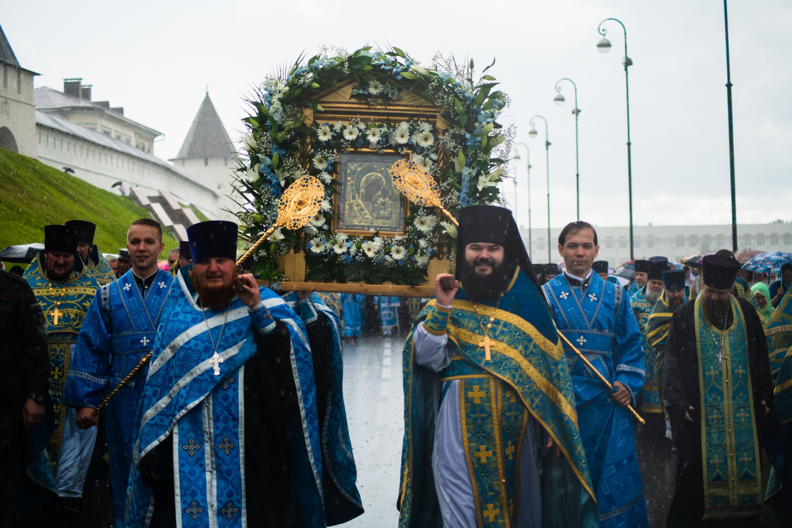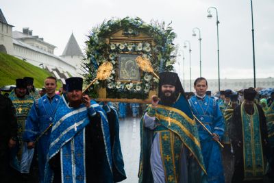 Мы совершили с вами крестный ход. Куда мы пришли? На место, где 440 лет тому назад явился образ Пречистой Девы Марии. Что значит «явился образ»? Что это — только доска, на которой написана икона, или же нечто большее? Да, это образ Пресвятой Богородицы, икона, через которую явилась Сама Царица Небесная. Почти четыре с половиной века Она с нами в Своем Казанском образе.