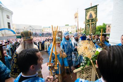 По прибытии в Богородицкую обитель духовенство совершило молебен перед Казанским образом. Затем митрополит Феофан обратился к участникам молитвенных торжеств с архипастырским словом: