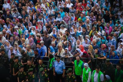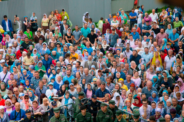 Все мы, собравшиеся на этом святом месте с разных уголков земли Русской, должны уйти сегодня отсюда с искренним желанием исполнить те заповеди, что оставил нам Христос. За наши грехи Он взошел на крест и с креста сказал Иоанну Богослову: се, Матерь твоя! (Ин. 19:27), — и мы все стали детьми Её, Она всех нас усыновила и удочерила.