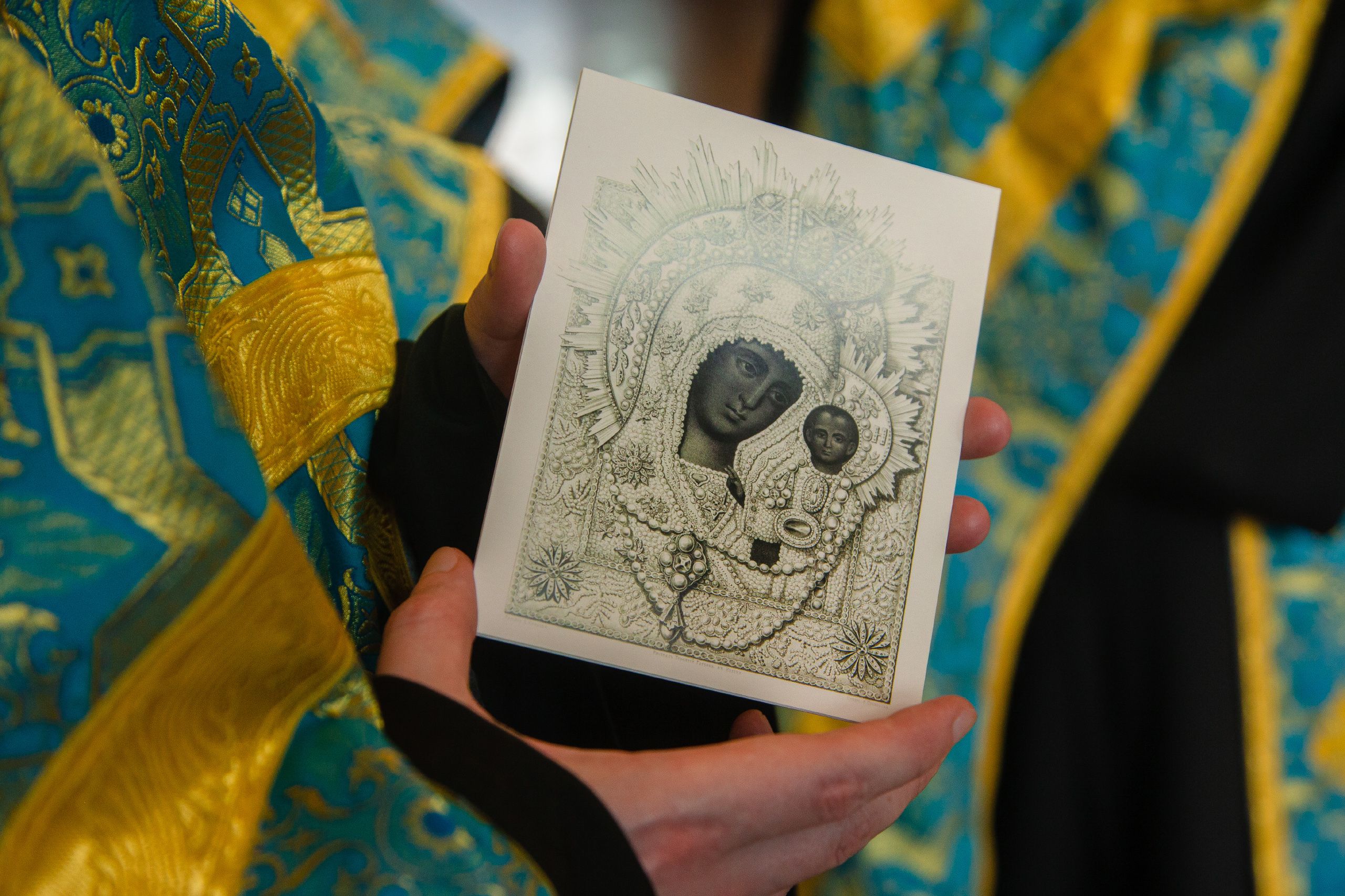 В завершение торжества под песнопения Пресвятой Богородице верующие приложились к почитаемому списку Царицы Небесной. Всем были розданы иконы с изображением первоявленного образа Пресвятой Богородицы «Казанская».