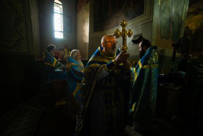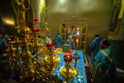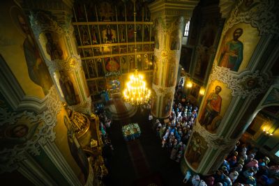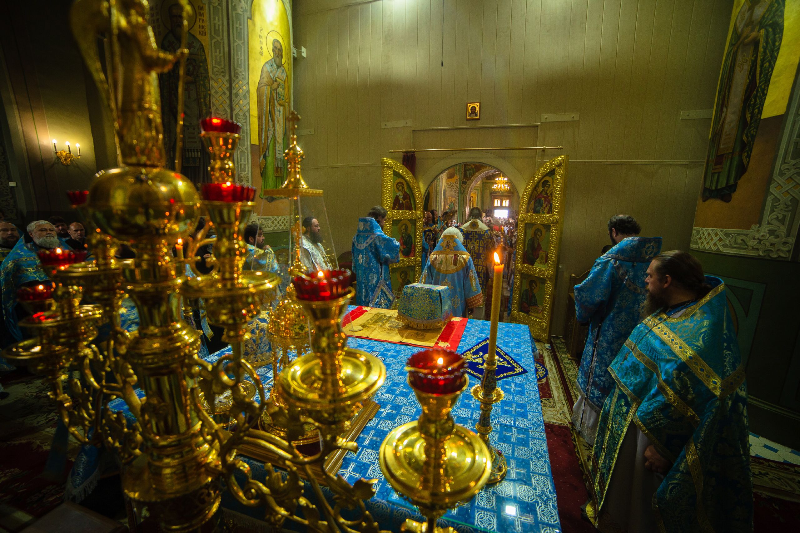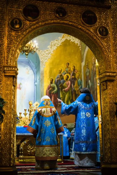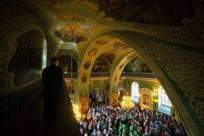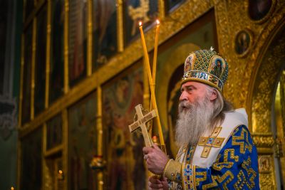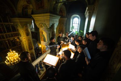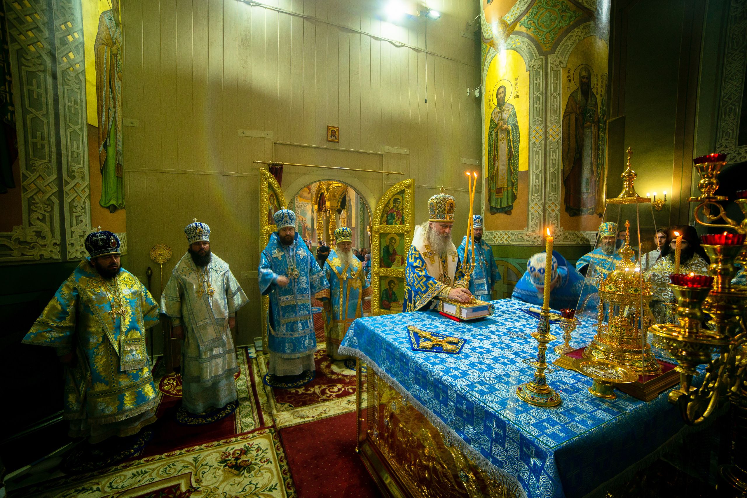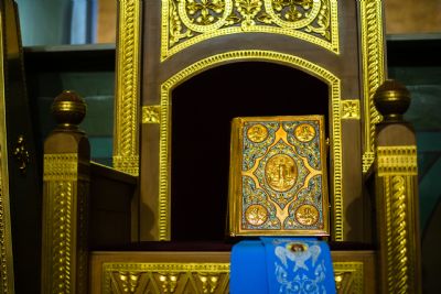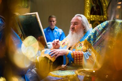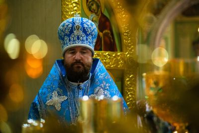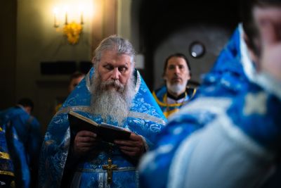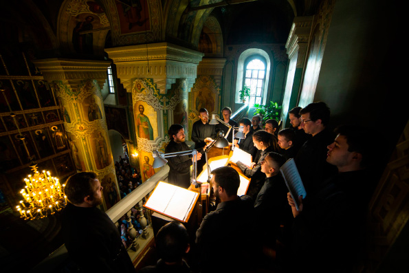 Богослужебные песнопения исполнял архиерейский мужской хор под управлением Дениса Рогова.