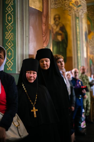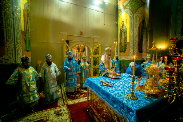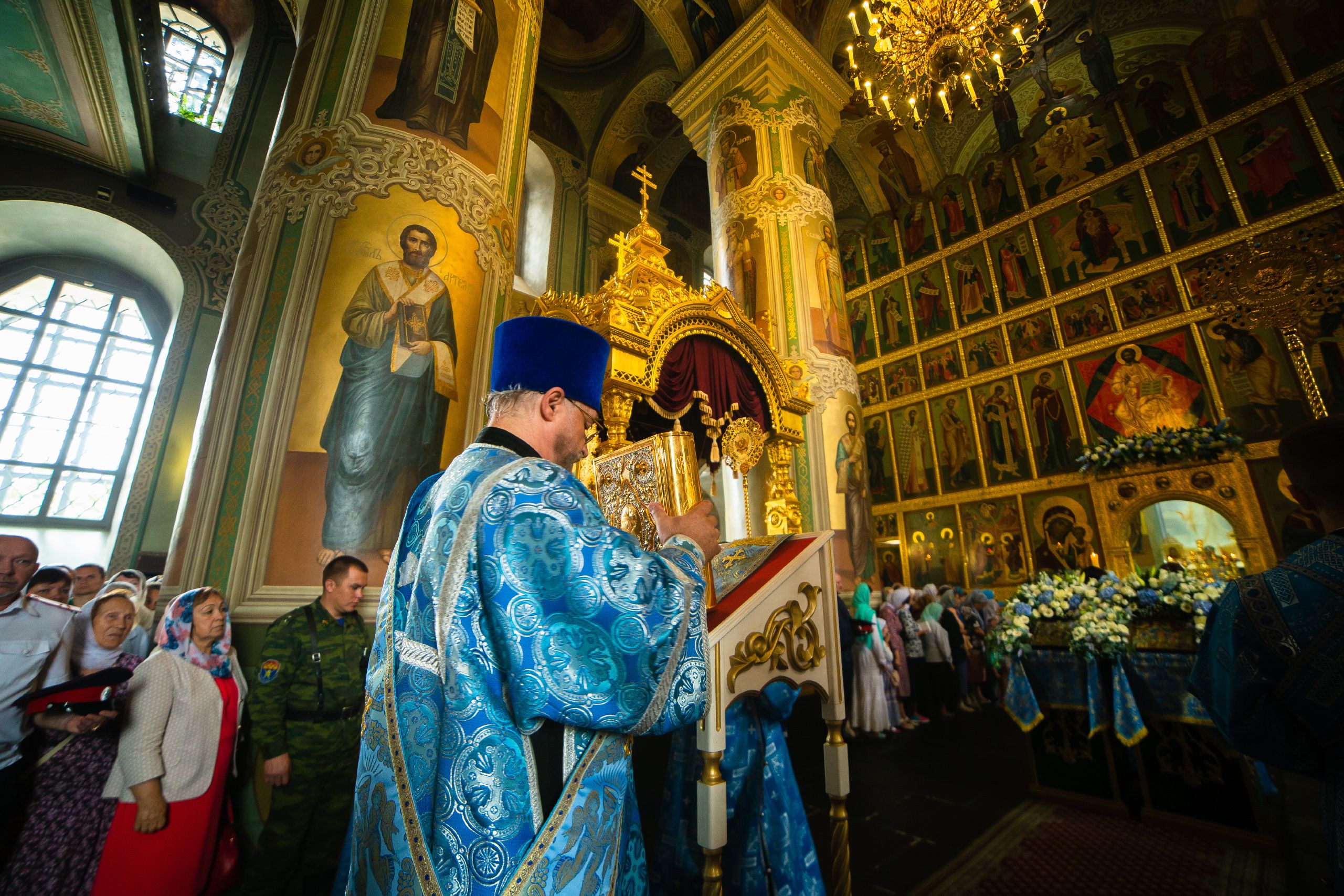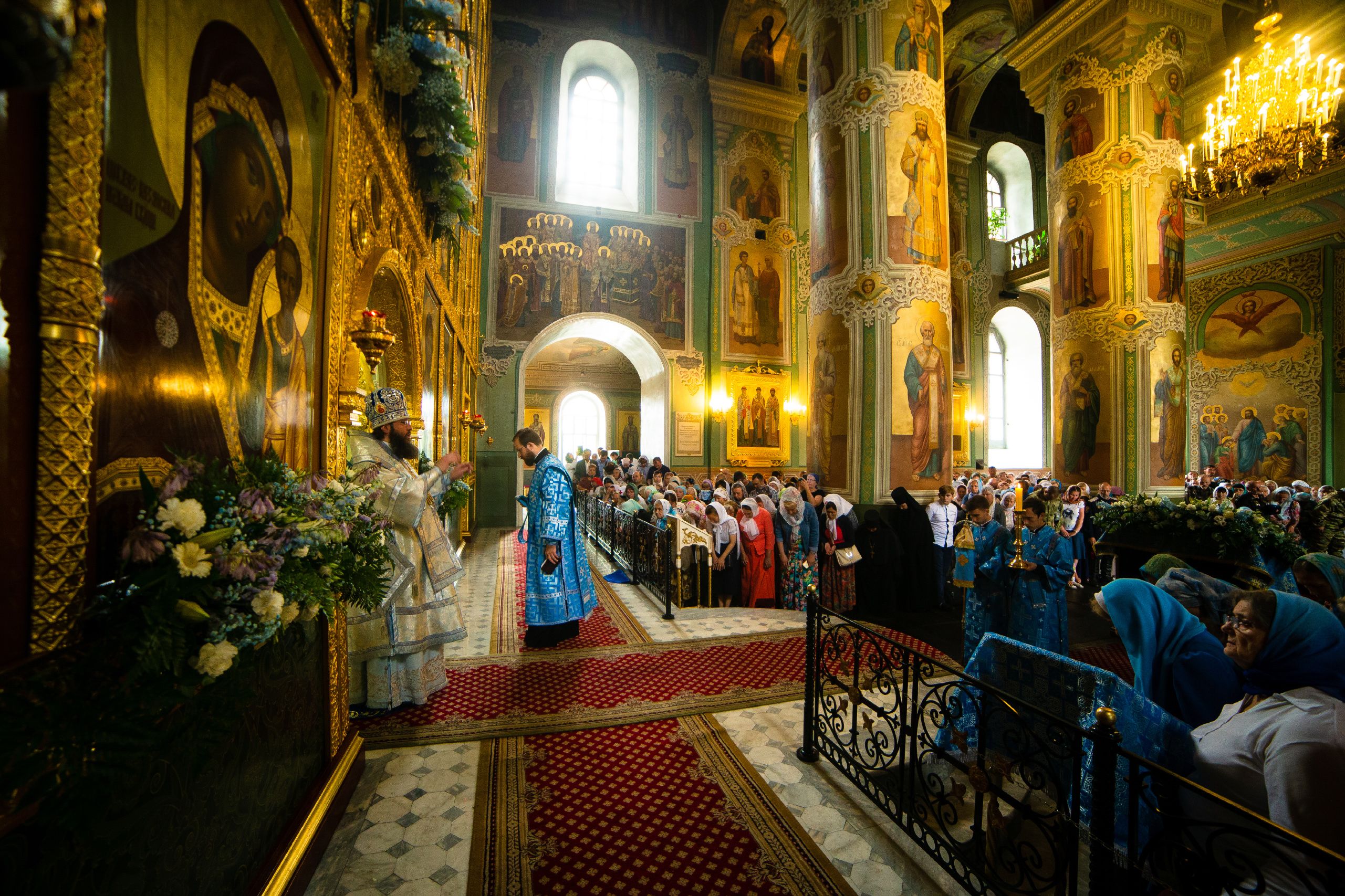 Литургию возглавили митрополит Казанский и Татарстанский Феофан, митрополит Челябинский и Миасский Григорий, председатель Синодального отдела по монастырям и монашеству архиепископ Каширский Феогност, епископ Магнитогорский и Верхнеуральский Иннокентий, епископ Альметьевский и Бугульминский Мефодий, епископ Чистопольский и Нижнекамский Игнатий.