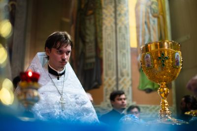 После Великого входа глава Татарстанской митрополии возвел в сан пресвитера выпускника Казанской духовной семинарии диакона Максима Смирнова.