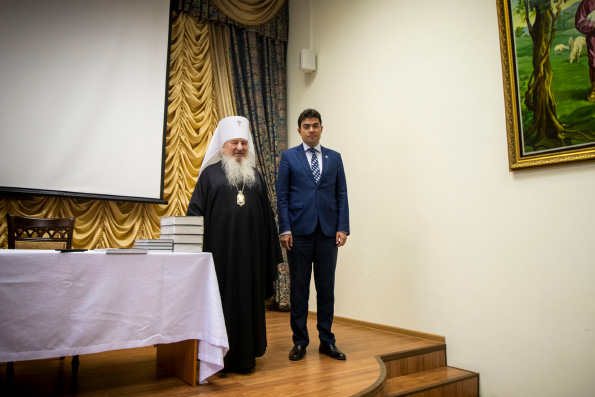 В завершение встречи митрополит Феофан преподнес Данияру Абдрахманову журнал Татарстанской митрополии «Православный собеседник» и Библию на татарском языке. Ректор Болгарской академии подарил Его Высокопреосвященству книгу «Изге Болгар» («Святой Болгар»).