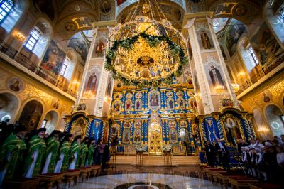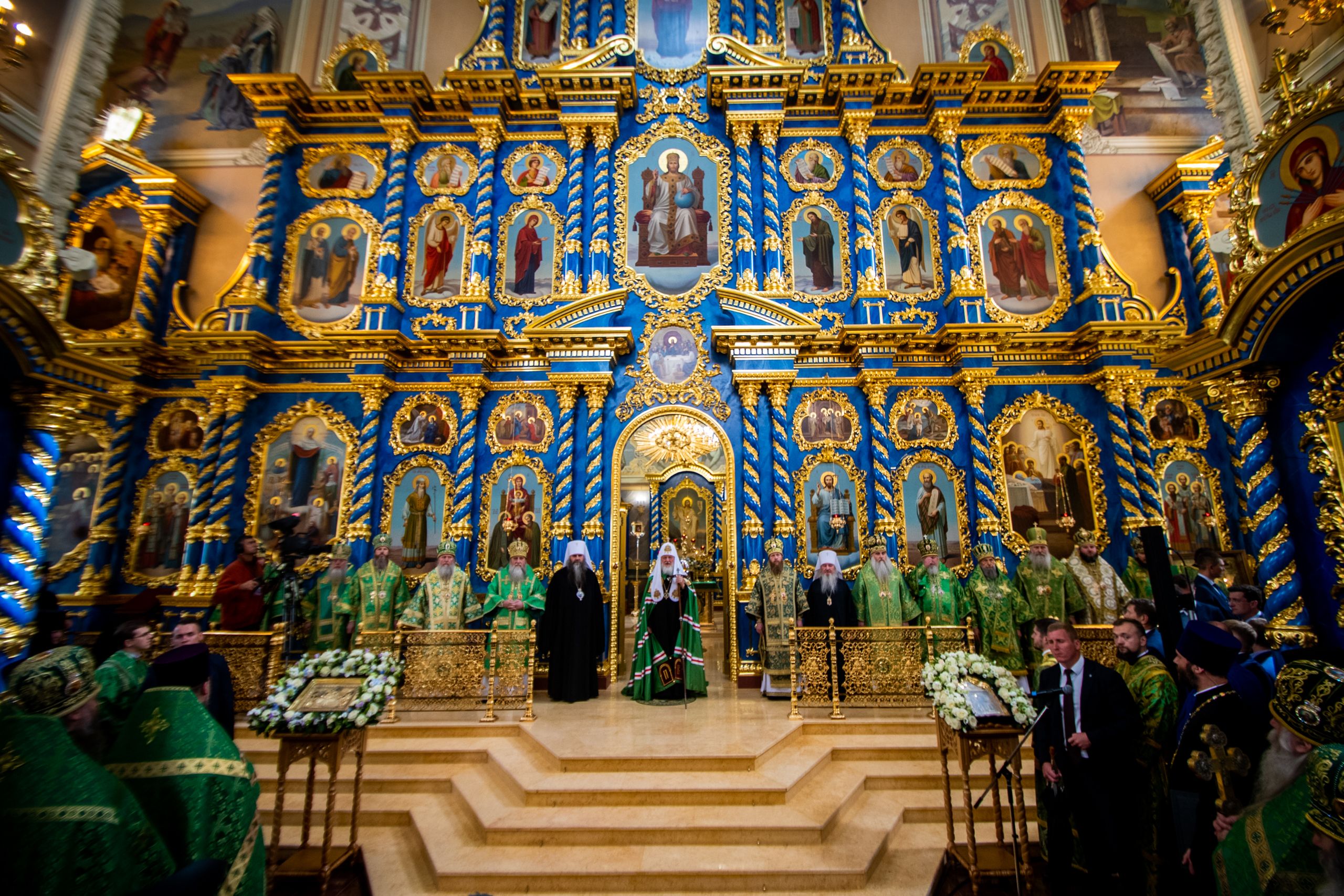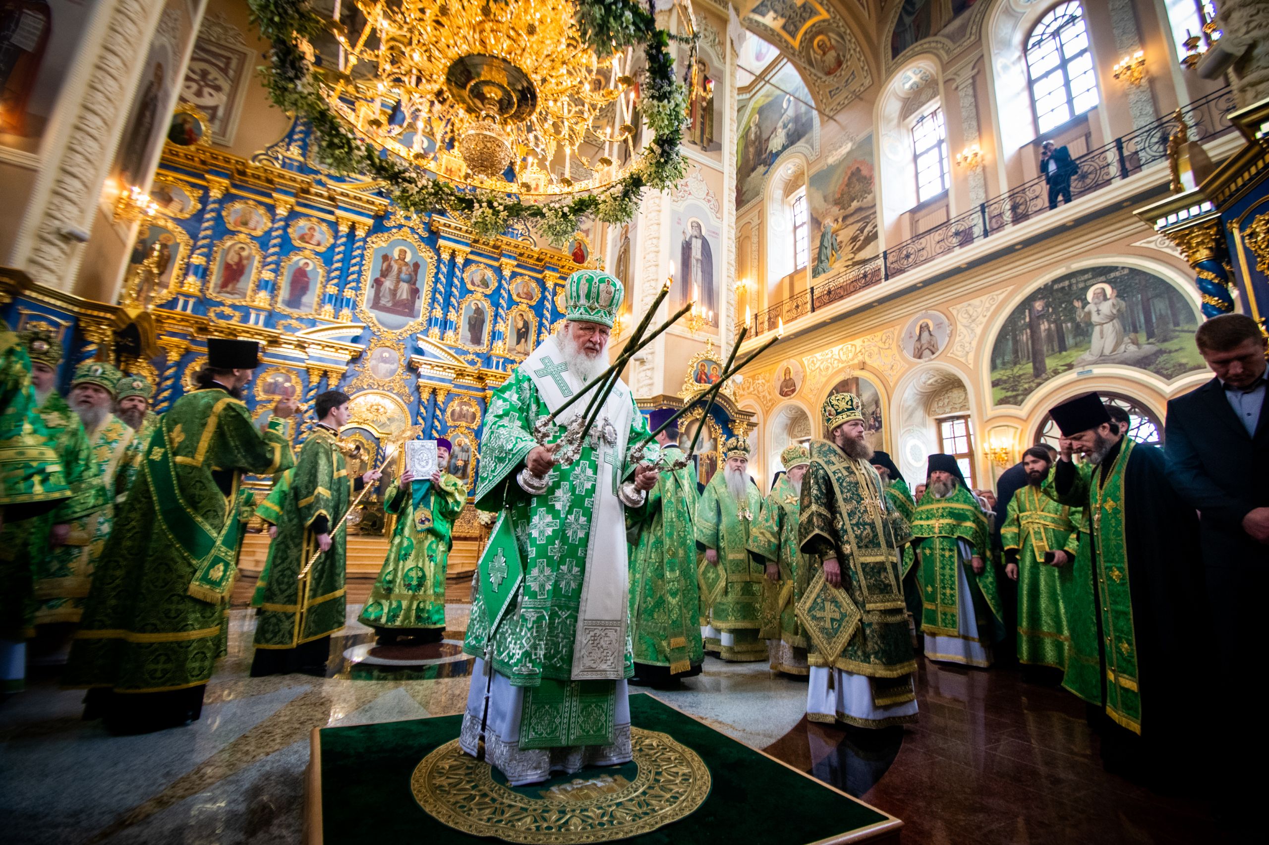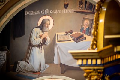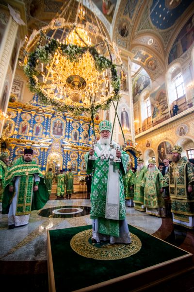 Святейший Патриарх Кирилл совершил великое освящение Успенского собора Саровской пустыни и Божественную литургию в новоосвященном храме.