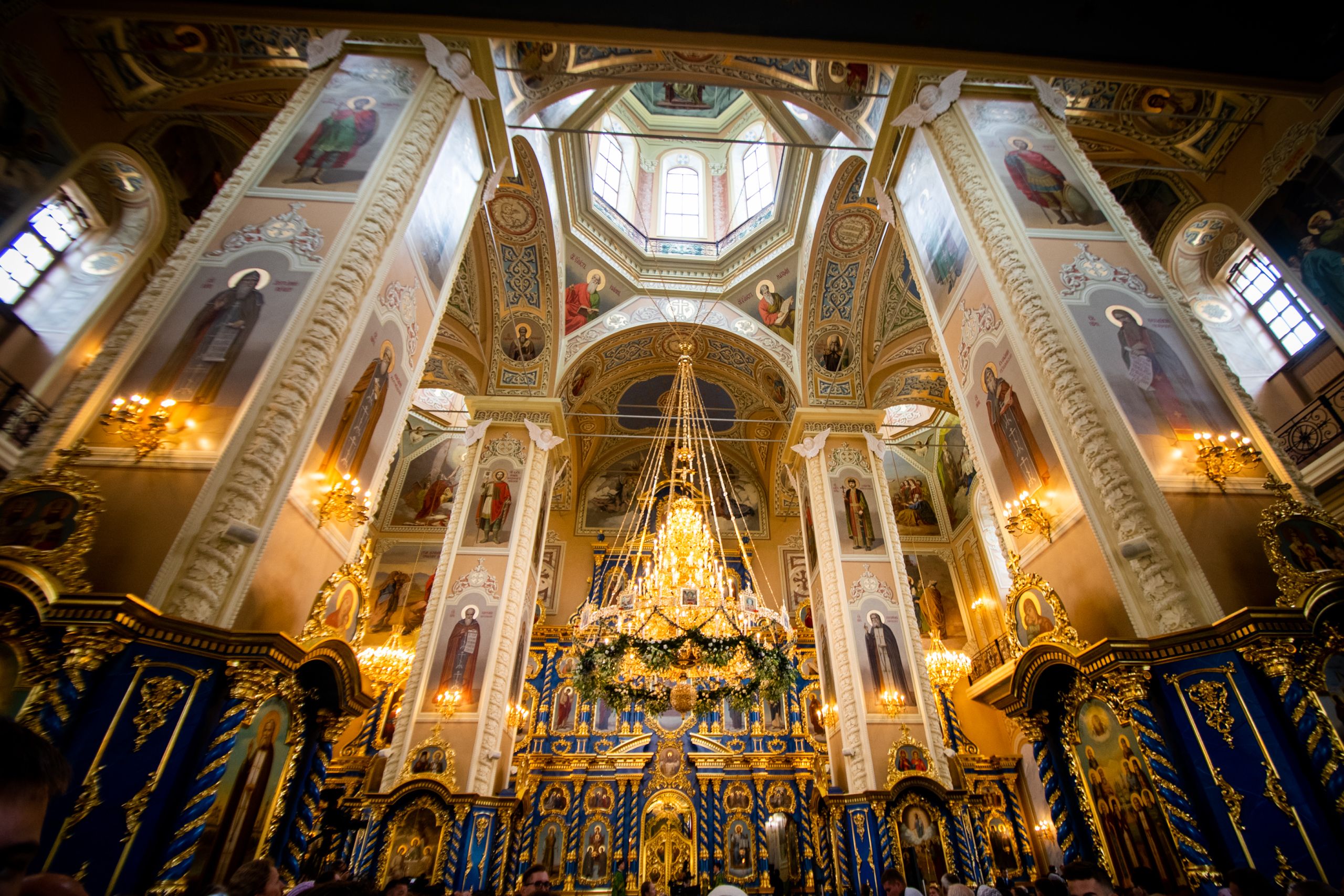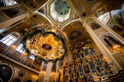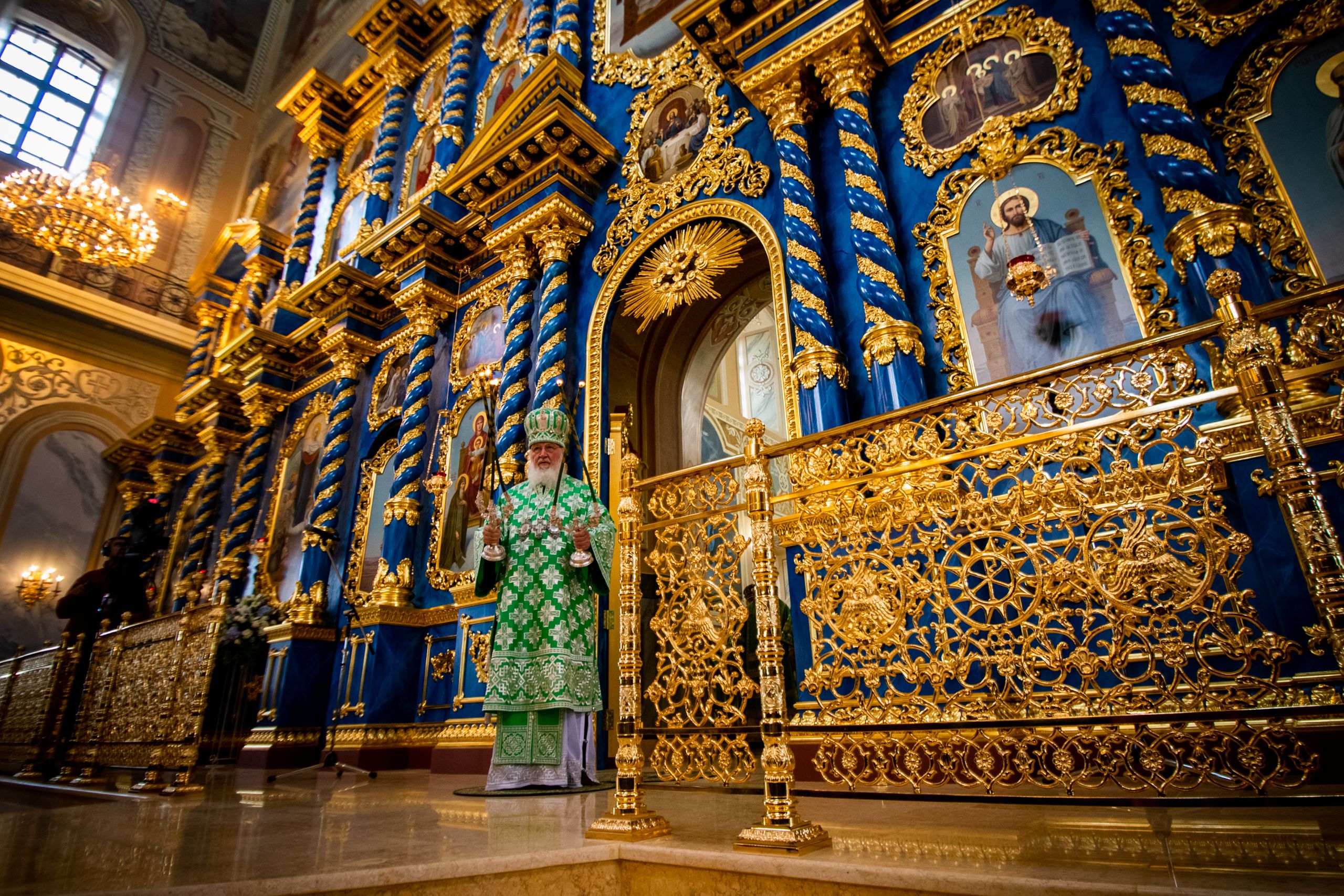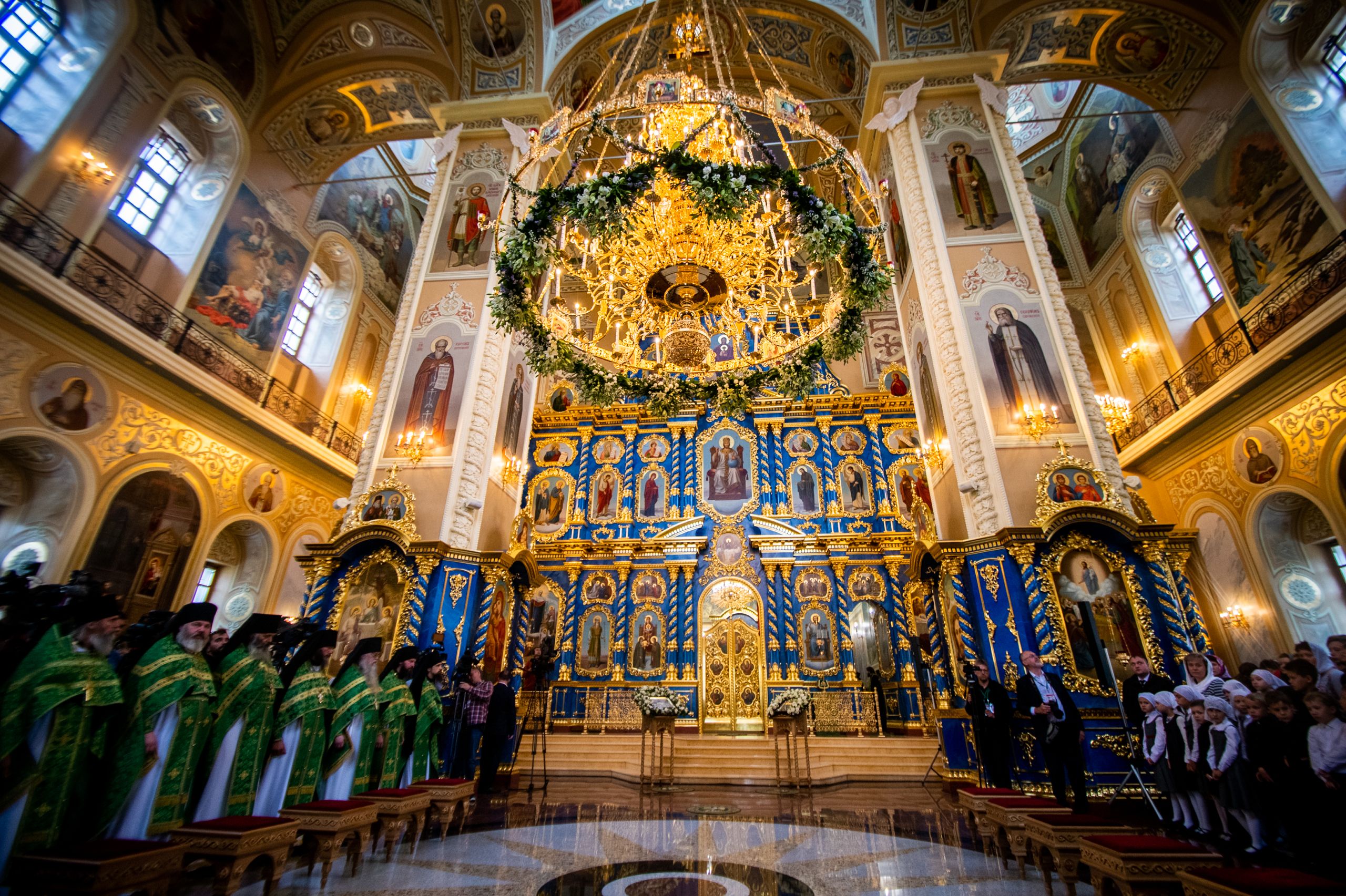 Святейший Патриарх Кирилл совершил великое освящение Успенского собора Саровской пустыни и Божественную литургию в новоосвященном храме.