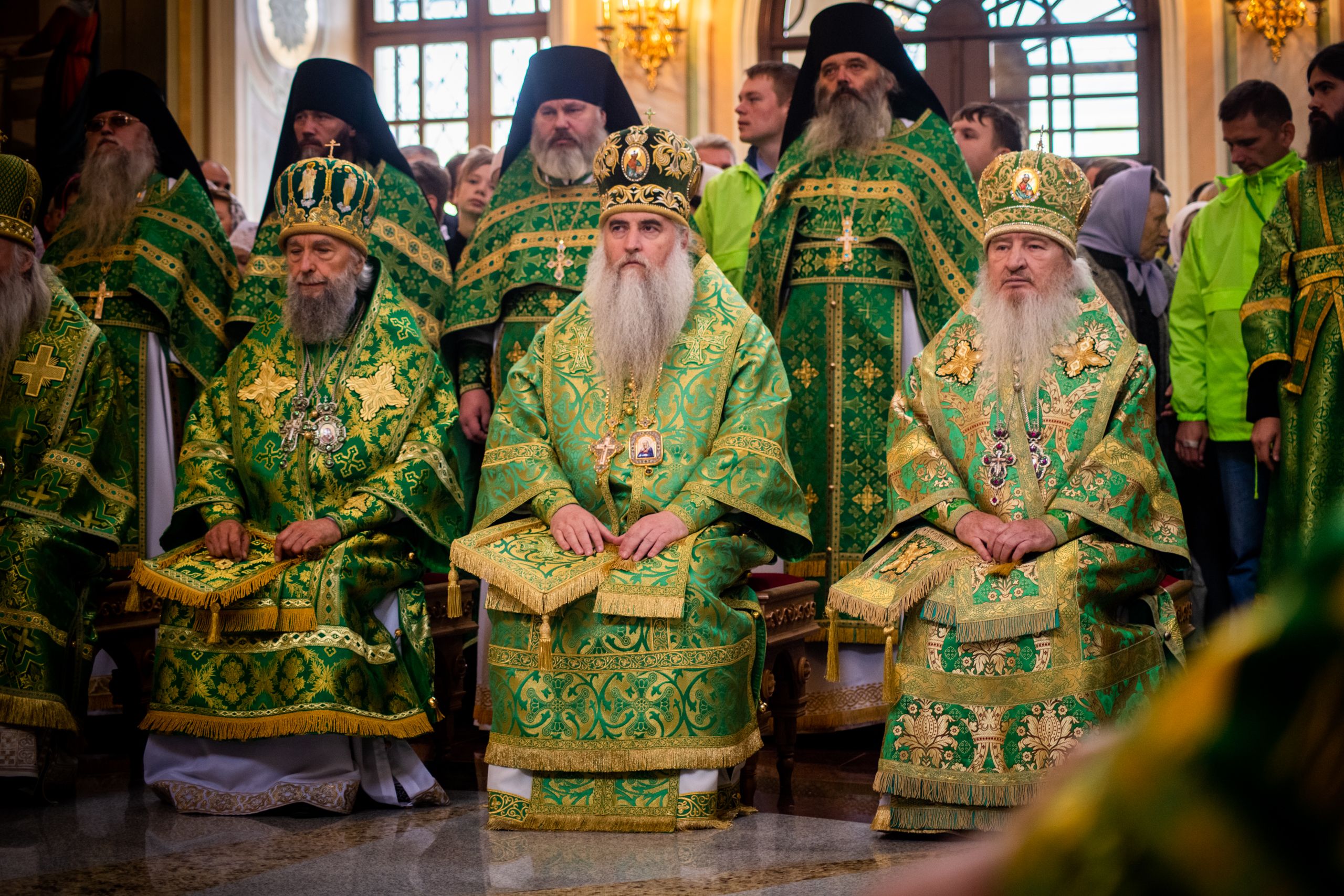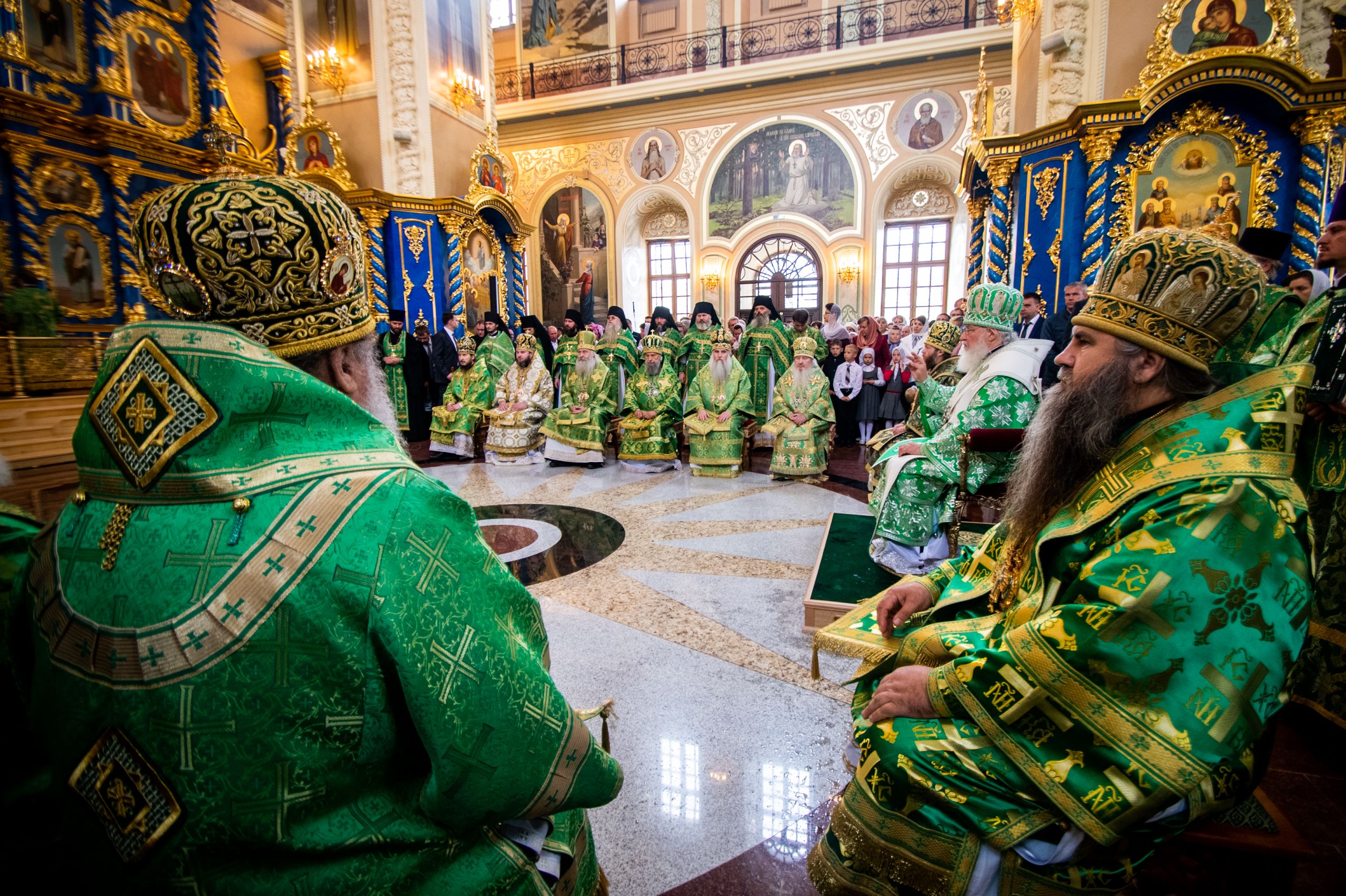 Его Святейшеству сослужили: митрополит Тверской и Кашинский Савва; митрополит Казанский и Татарстанский Феофан; митрополит Нижегородский и Арзамаcский Георгий; митрополит Оренбургский и Саракташский Вениамин; митрополит Саратовский и Вольский Лонгин; митрополит Ставропольский и Невинномысский Кирилл, председатель Синодального комитета по взаимодействию с казачеством; митрополит Саранский и Мордовский Зиновий; архиепископ Витебский и Оршанский Димитрий; архиепископ Каширский Феогност, председатель Синодального отдела по монастырям и монашеству; епископ Дальнеконстантиновский Филарет; епископ Выксунский и Павловский Варнава; епископ Котласский и Вельский Василий; епископ Лысковский и Лукояновский Силуан; епископ Павлово-Посадский Фома; игумен Никон (Ивашков), наместник Саровской пустыни; протоиерей Сергий Матвеев, секретарь Нижегородского епархиального управления; архимандрит Александр (Лукин), наместник Благовещенского мужского монастыря г. Нижнего Новгорода; архимандрит Тихон (Затекин), наместник Вознесенского Печерского мужского монастыря г. Нижнего Новгорода; священник Александр Волков, руководитель Пресс-службы Патриарха Московского и всея Руси; братия Саровской обители в священном сане, духовенство Нижегородской митрополии.