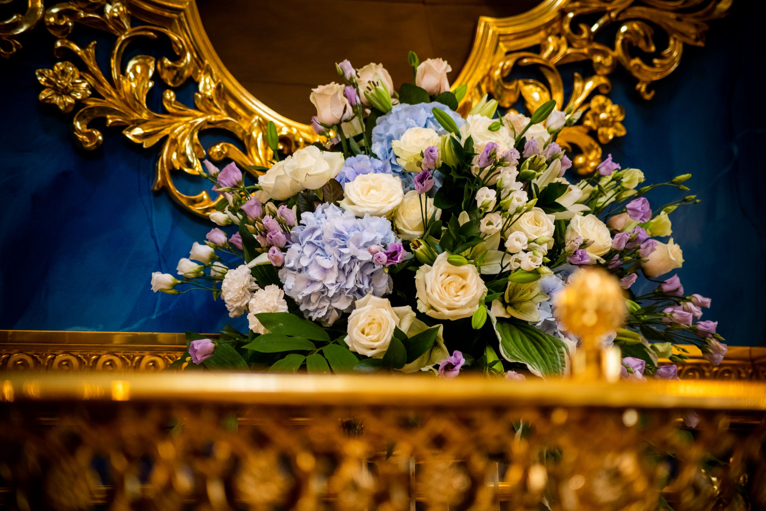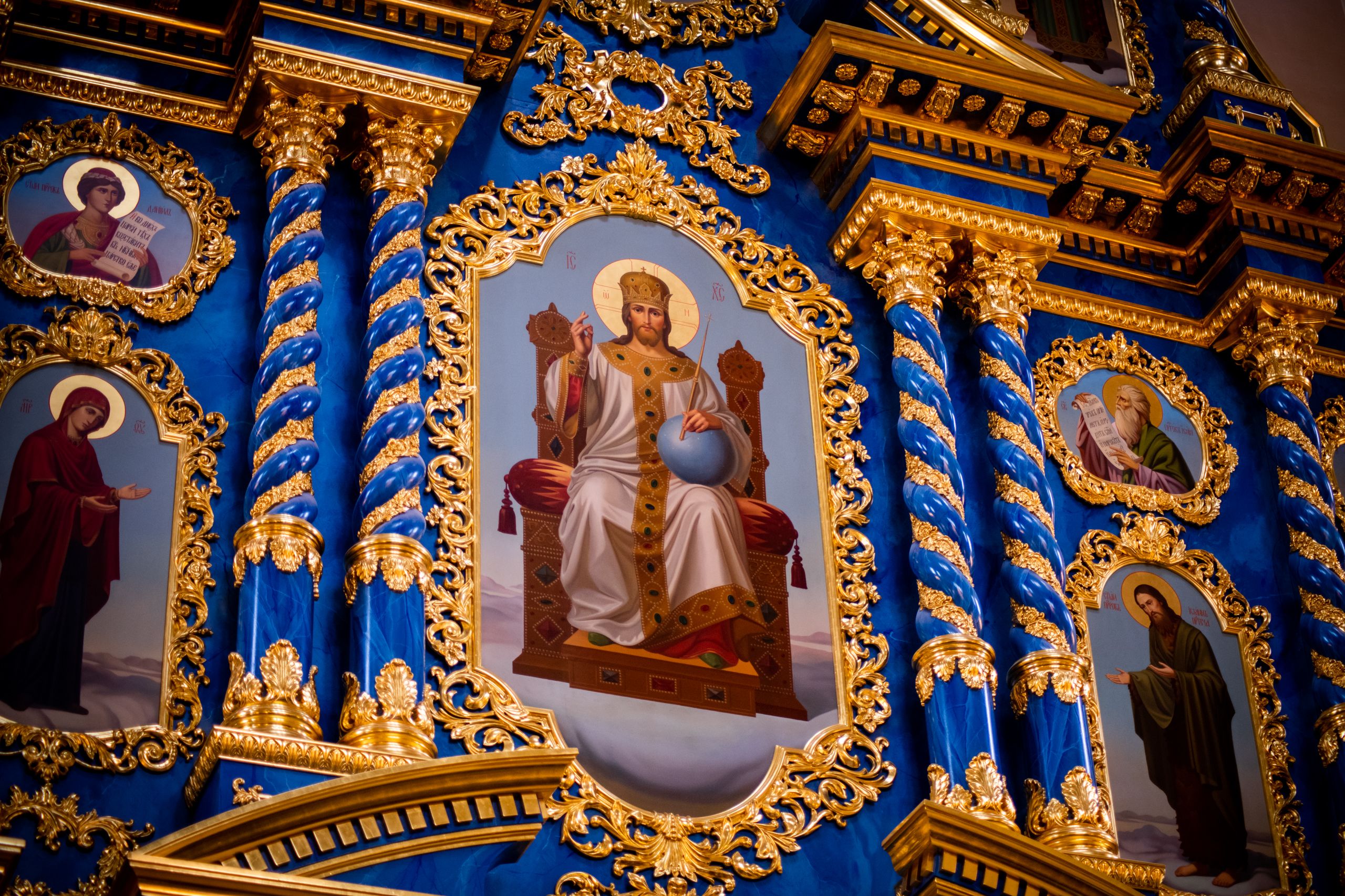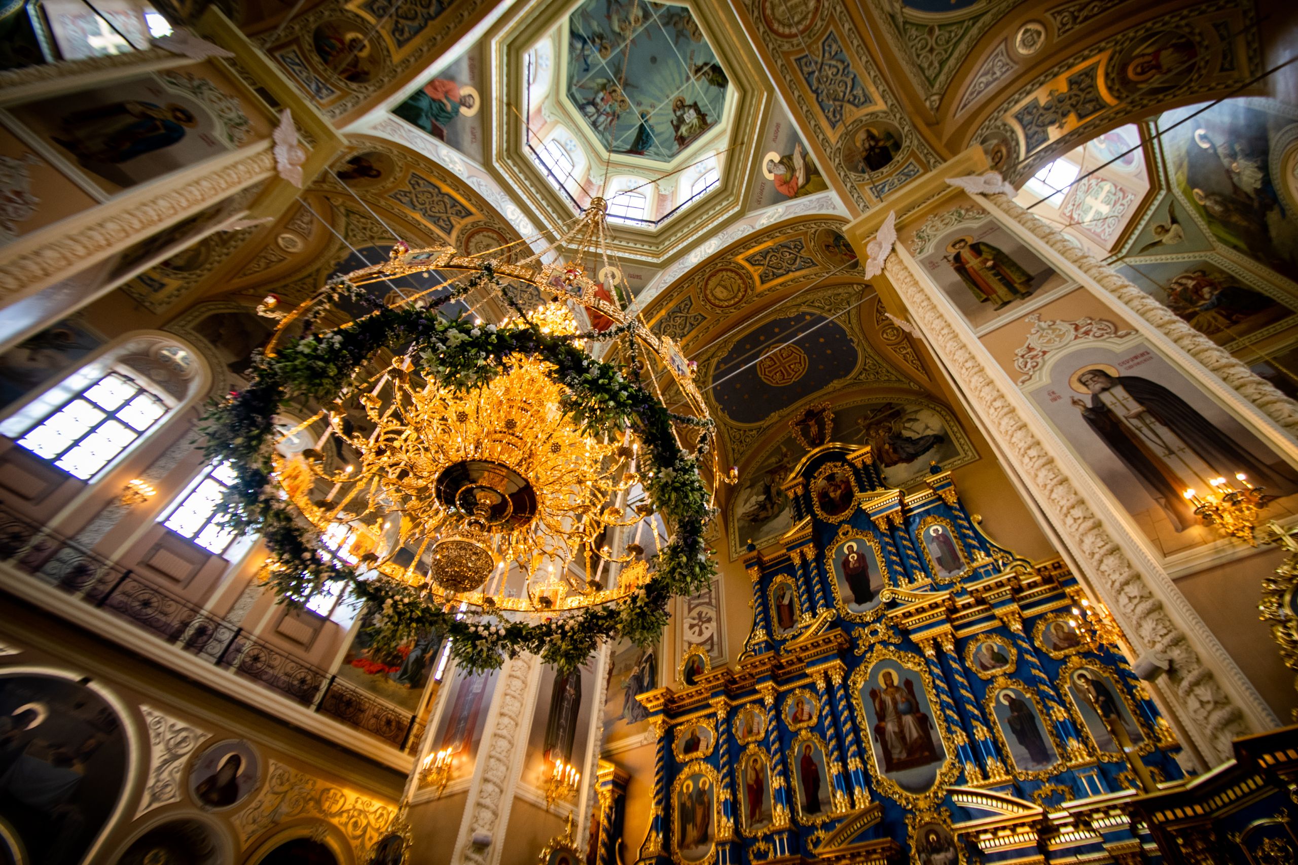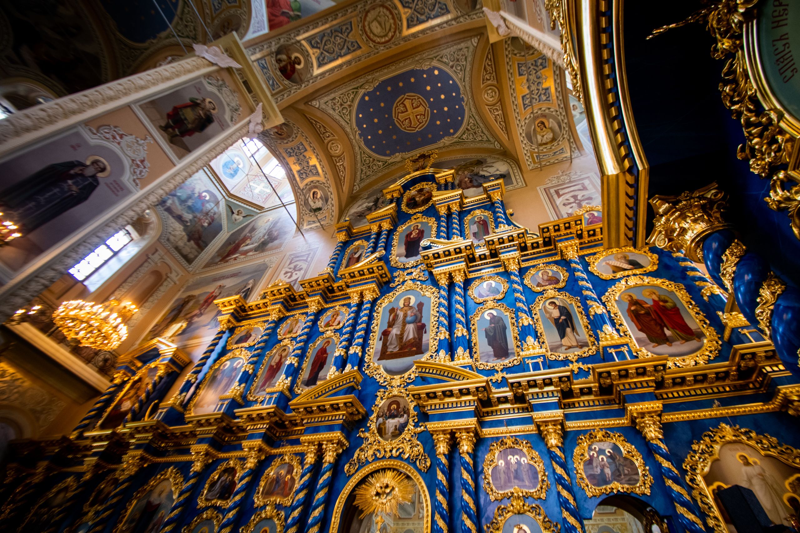 Отличительной особенностью интерьера храма был пятиярусный резной позолоченный иконостас с иконами византийского письма, высота которого посередине равнялась 19 метрам, а по краям — 27. По легенде, рисунок этого иконостаса сделал архитектор Растрелли.