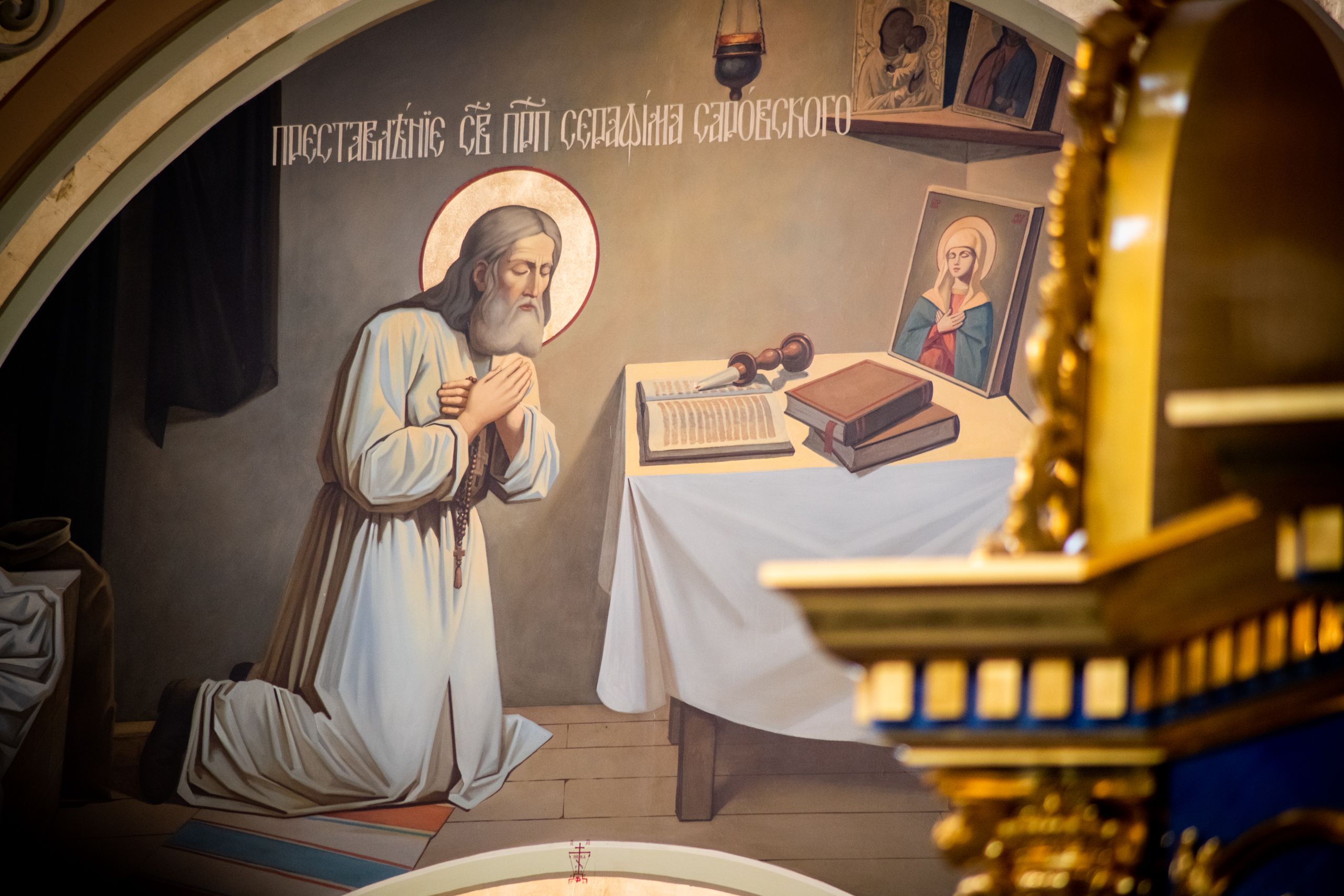 По окончании богослужения митрополит Нижегородский и Арзамасский Георгий приветствовал Святейшего Владыку и преподнес Его Святейшеству напрестольный крест из Успенской Саровской пустыни. Крест был изготовлен московским серебряником Федором Никифоровым в первой трети XVIII века. В нем содержится 73 частицы мощей и других святынь. В 1730 году иерей Петр Григорьев, клирик московского храма Воскресения в Барашах, передал этот крест в обитель в качестве вклада на вечное поминовение своего отца — иерея Георгия, приявшего постриг в Саровской обители в 1727 году и через два года после этого скончавшегося. Этот крест упоминается в описаниях Саровской обители XIX — нач. XX вв. в разделе «Кресты напрестольные». В 1927 году Саровский монастырь был ликвидирован решением Антирелигиозной комиссии Политбюро ЦК ВКП (б). В настоящее время крест был выкуплен из зарубежного частного собрания и пожертвован монастырю.