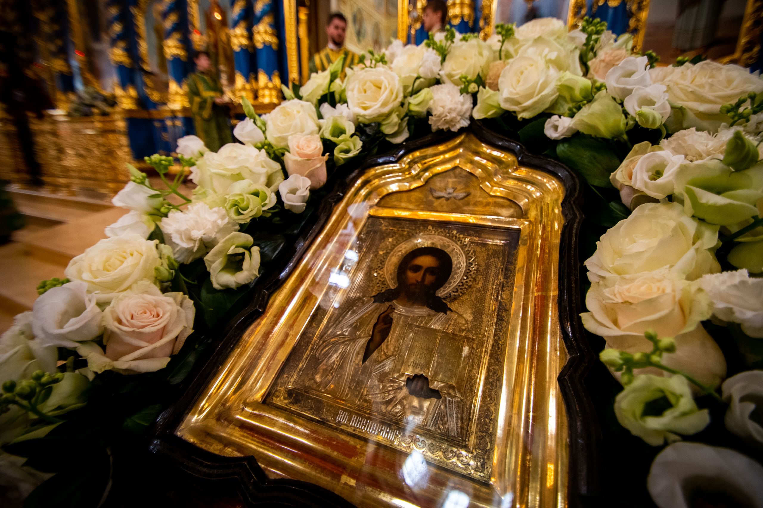 Верующим были вручены иконки Успения Божией Матери с Патриаршим благословением.