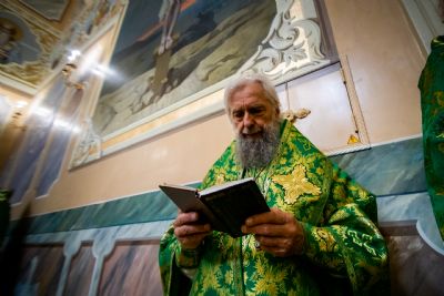 Проповедь перед причастием произнес протоиерей Сергий Шалатонов, настоятель соборной церкви Живоначальной Троицы г. Нижнего Новгорода.