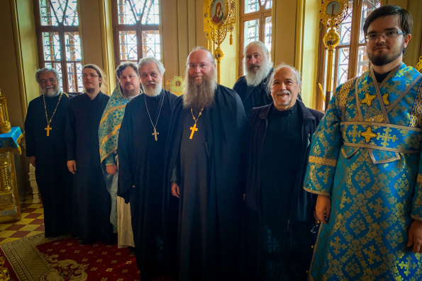 Божественную литургию возглавил наместник Свияжской обители игумен Симеон (Кулагин). Ему сослужили настоятель храма святых Новомучеников и Исповедников Российских на Бутовском полигоне протоиерей Кирилл Каледа, клирик греческого кафедрального собора в городе Венеция (Элладская Православная Церковь) протоиерей Николай Мадаро, клирик храма Воскресения Христова в городе Медон (Русская Православная Церковь Заграницей) диакон Александр Болдырев и секретарь кафедры церковно-практических дисциплин Казанской духовной семинарии диакон Никита Кузнецов.