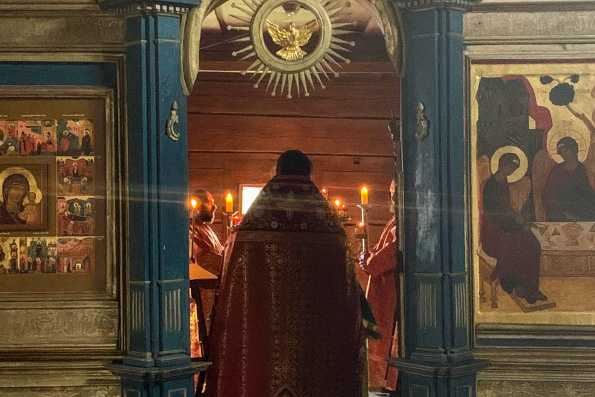 По запричастном стихе игумен Пимен (Ивентьев) произнес проповедь.
